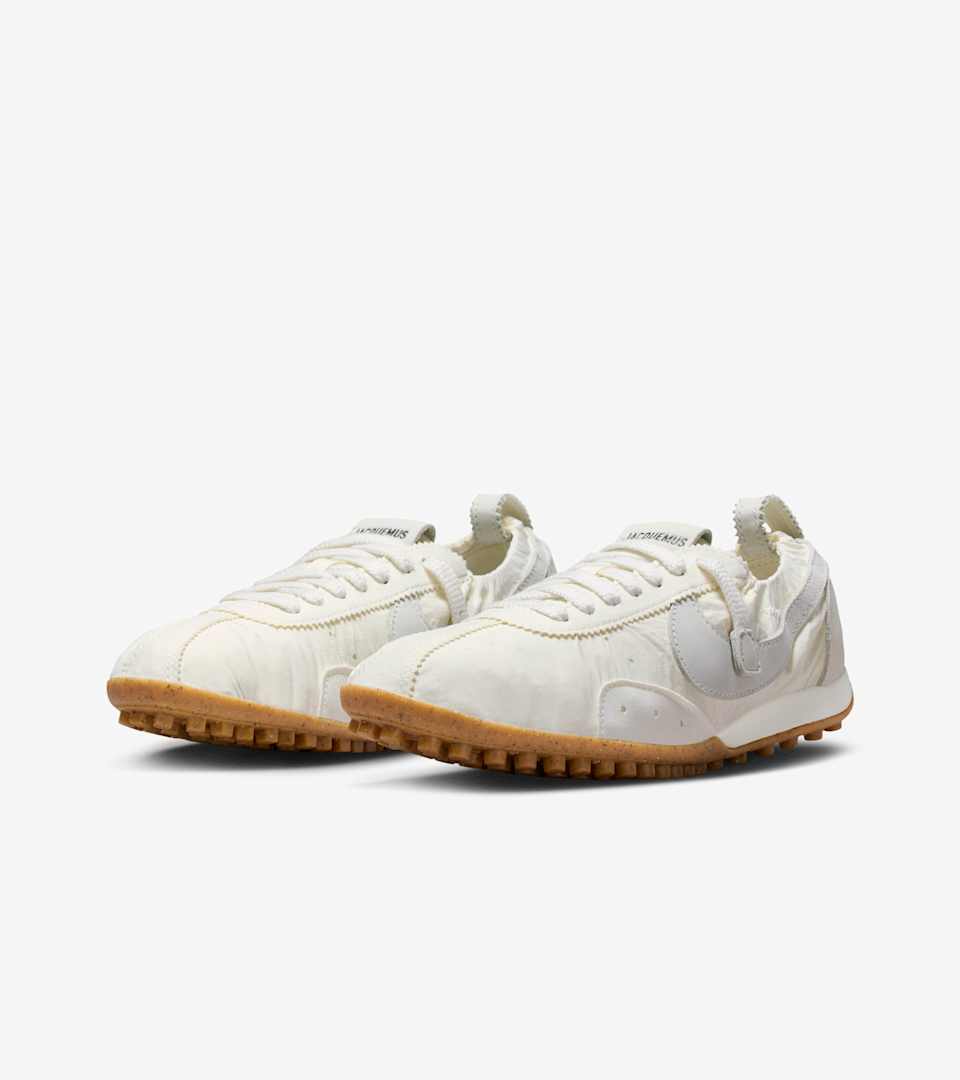 Simon Porte Jacquemus' fourth footwear collaboration with Nike dives deep into the company’s running history and DNA. For the first time ever, Bill Bowerman's hand-built Moon Shoe is the subject of reinterpretation.