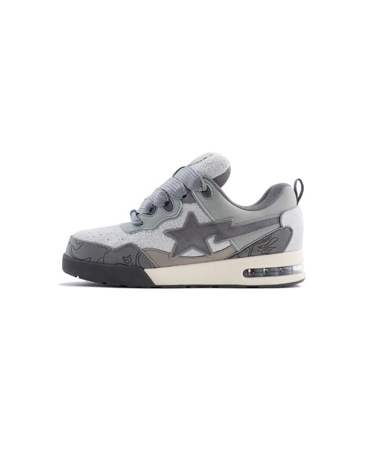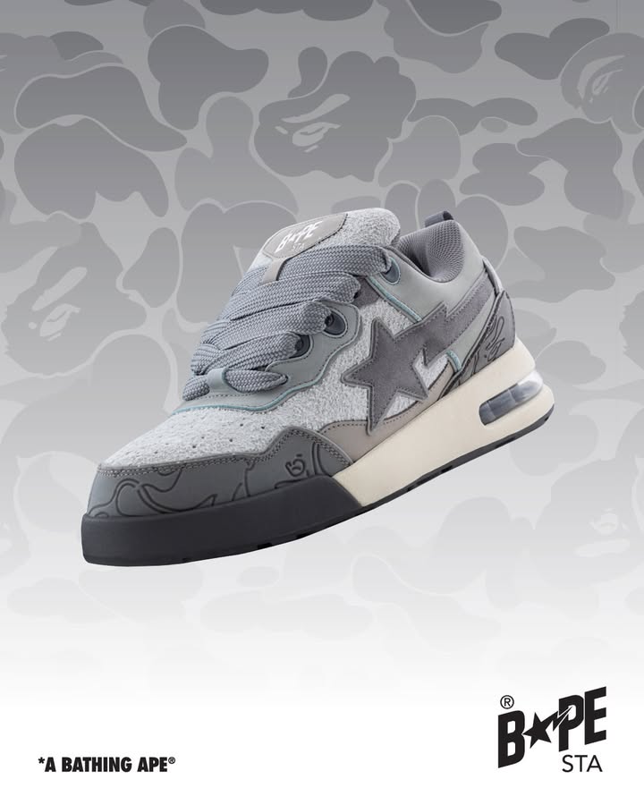 Refined and elevated—this BAPE® FLIP STA edition embraces tone-on-tone sophistication with long-hair suede and debossed line camo detailing. Thick flat laces and a visible air unit complete the look, blending comfort with understated luxury.