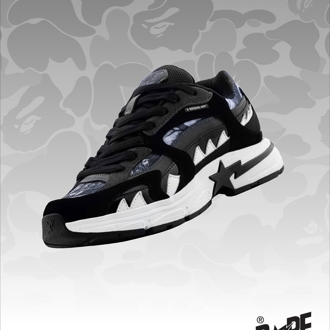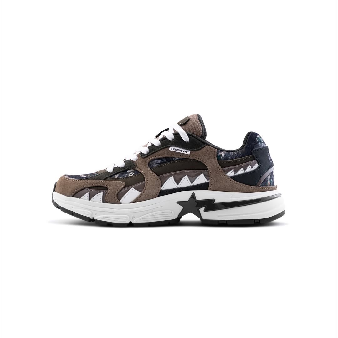 BAPE® SHARK STA returns with a bold TREE EDGE CAMO design, inspired by the FW25 collection. Available in classic black and duck green.