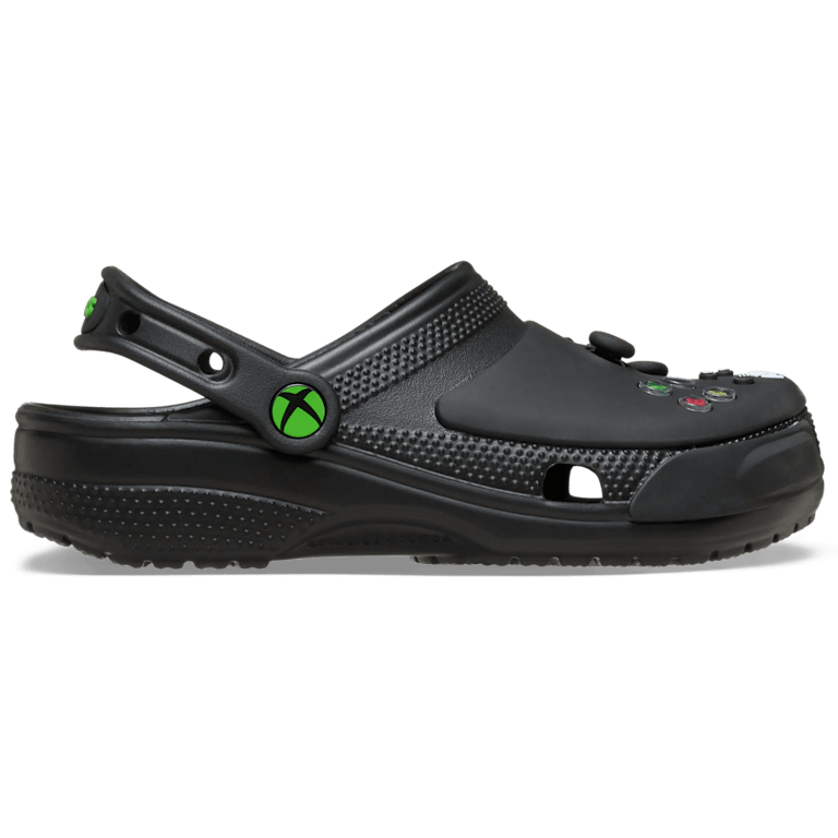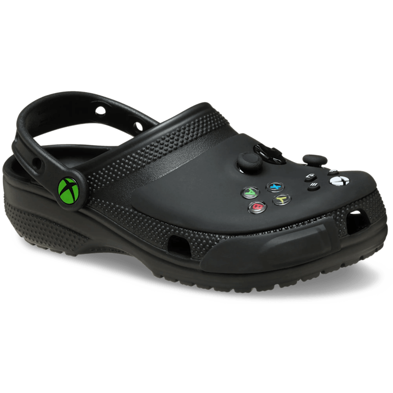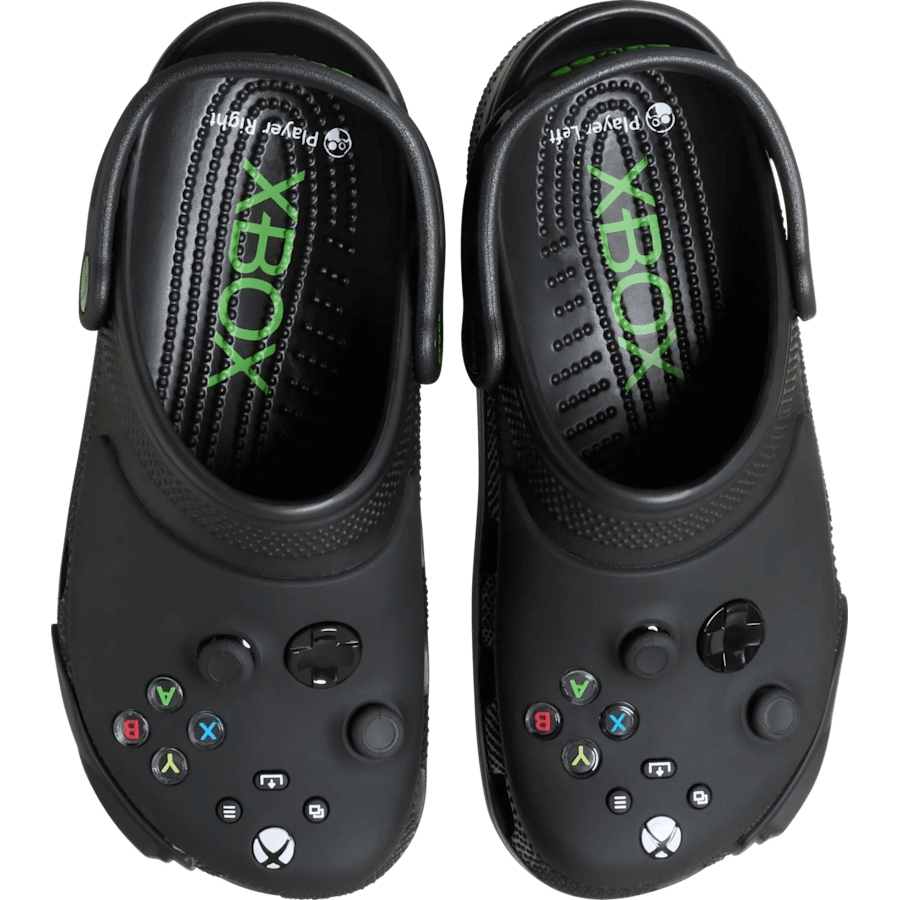 The Xbox Classic Clog was designed to kick back and game. This clog-meets-controller style features fixed joysticks and buttons with a smooth matte finish and branded Xbox rivet.