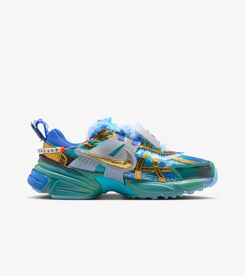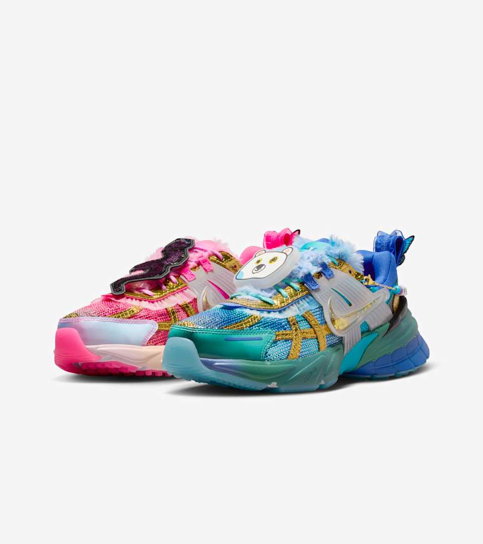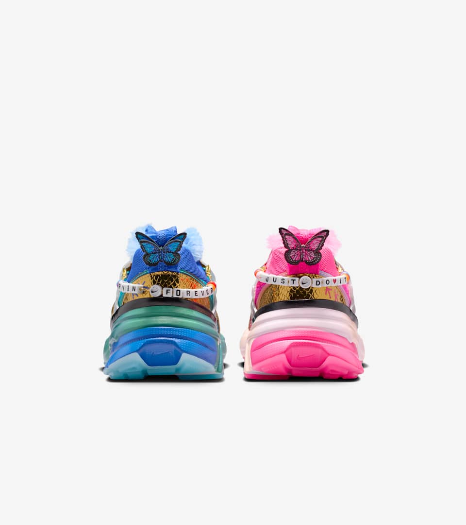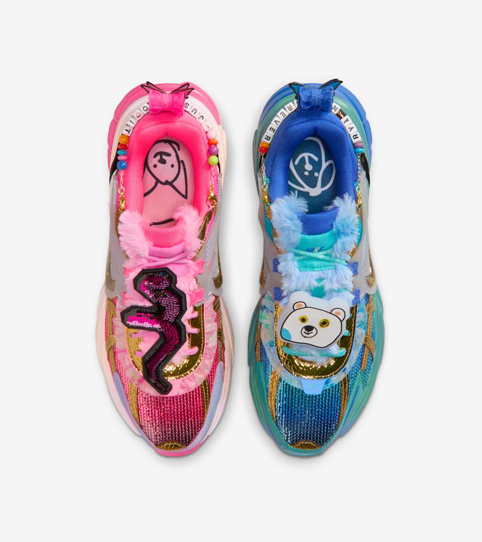 As part of the Doernbecher Freestyle program, which gives young patients at OHSU Doernbecher Children’s Hospital the opportunity to work with Nike design teammates, Khovny created her very own V2K Run to celebrate (quite literally!) everything she loves. You'll find shiny snakes, a drawing of her favorite stuffie, Papa Bear and a miniature recreation of Khovny's stuffed money, Pinkie Doo Doo. Each shoe boasts a different bright color inspired by one of her favorite musician’s album covers. Khovny hopes you'll wear the detachable friendship bracelet to honor the memory of her brother Ryan, who had the same rare condition as his sister.