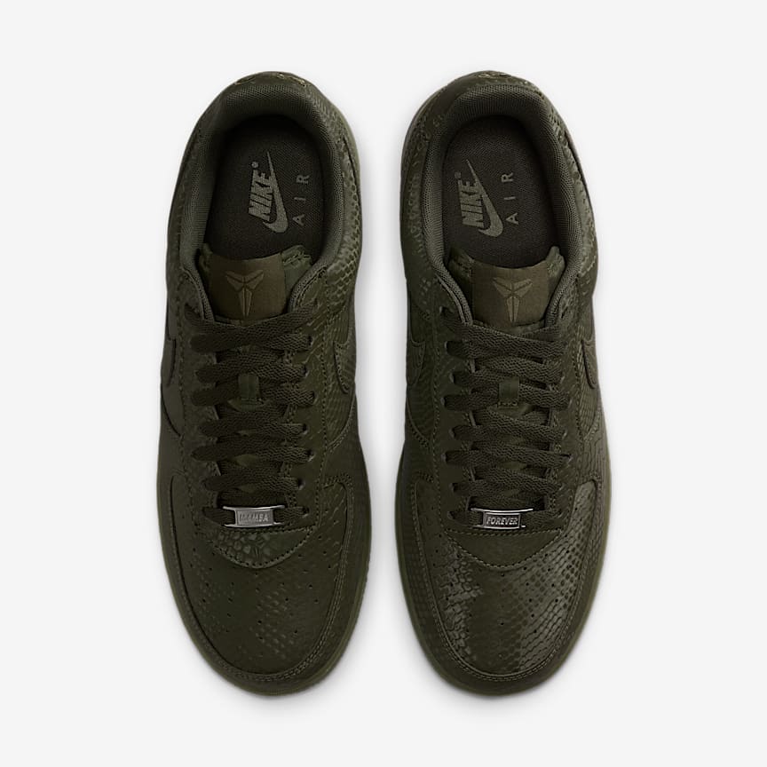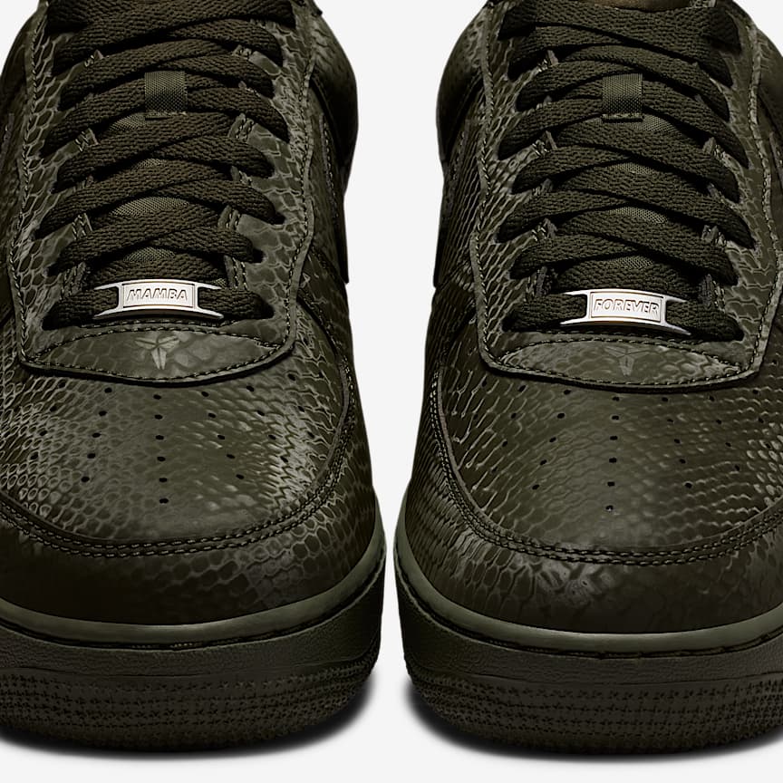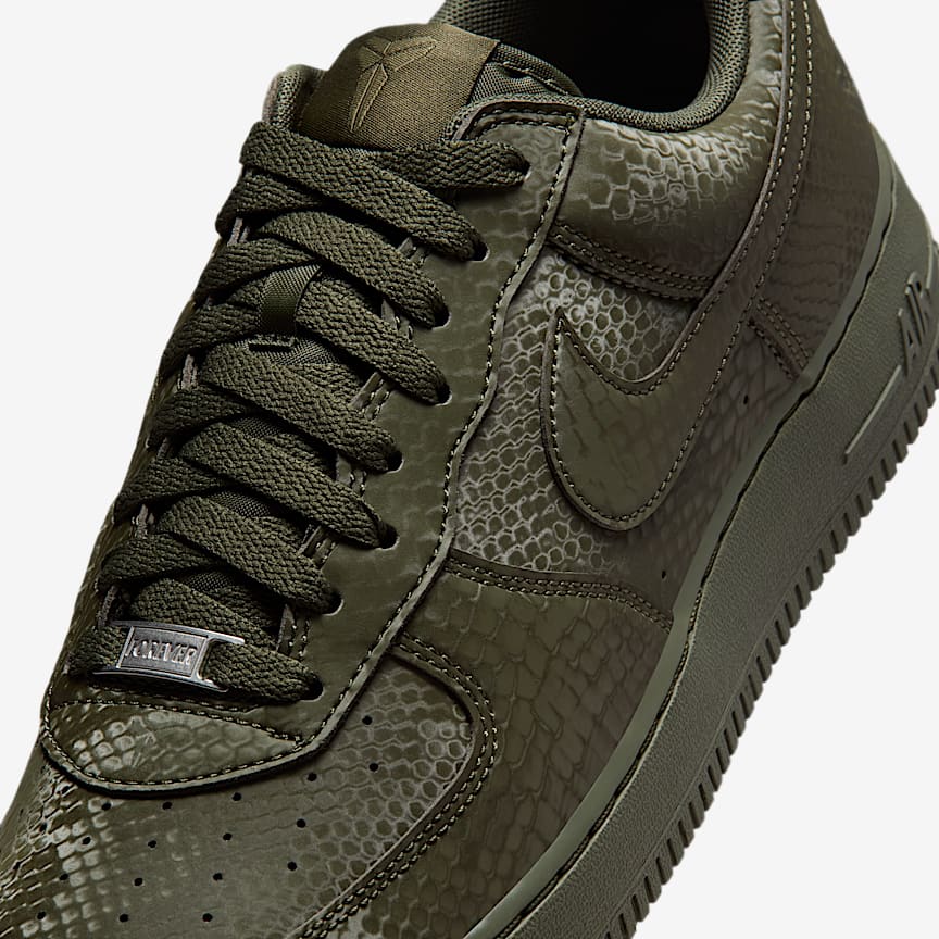 This special-edition AF1 is infused with Mamba DNA, like the allover snakeskin print—putting a distinct spin on an all-time classic. The embroidered "8" and "24" on the heel nod to Kobe's retired jersey numbers, while Sheath logos on the tongue and outer heel add signature branding. Complete with special "Mamba Forever" lace dubraes, this Kobe AF1 continues the legacy. Benefits Synthetic leather upper with perforated toe box is breathable and comfortable. Nike Air unit provides lightweight cushioning. Rubber outsole with heritage hoops pivot circles delivers traction and durability. Product Details Padded collar Foam midsole