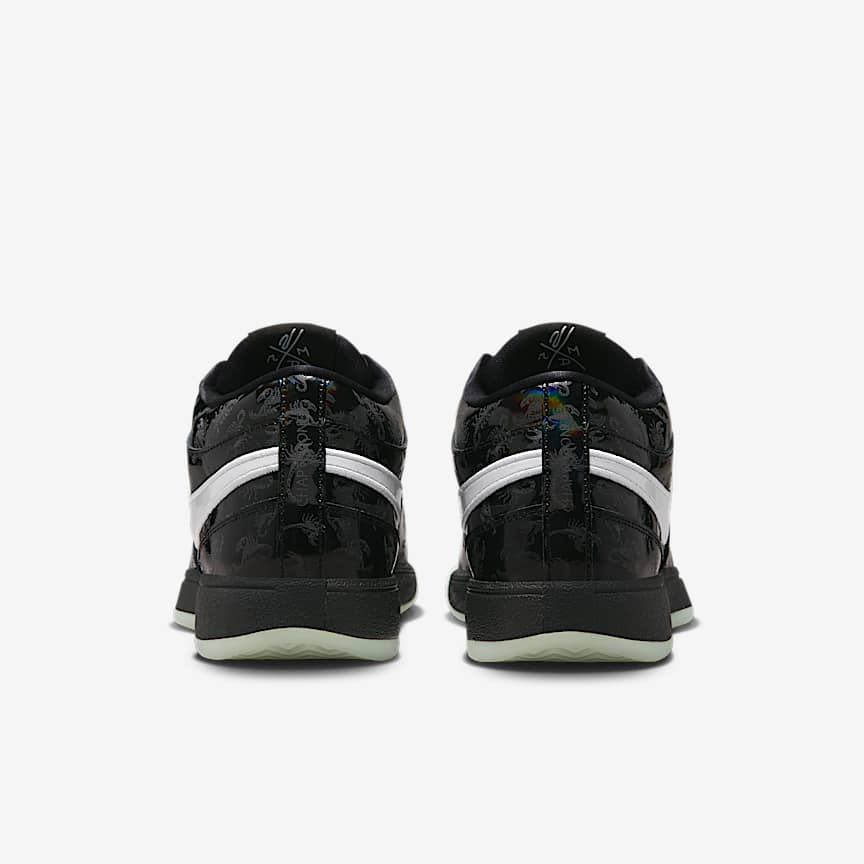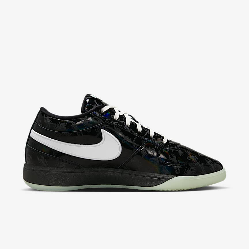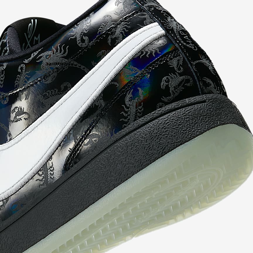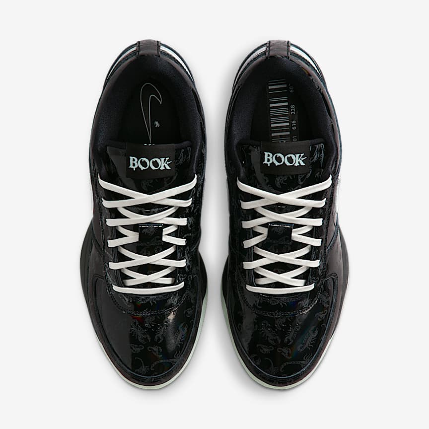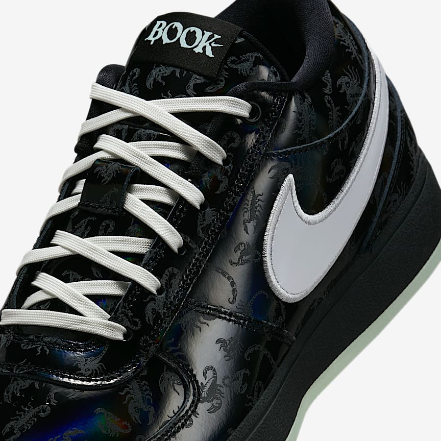 It's slim pickings trying to locate a Arizona Bark Scorpion during the day. But shine a UV light along the desert floor at night and these creepy critters actually glow—just like Book when he’s lighting up a defense with a 30-piece. This special Book 1 takes on the arachnid’s attributes and then some. The black-rainbow leather upper comes with a printed scorpion pattern that’s visible under UV lighting. And, a glow-in-the-dark outsole completes a look ready for slithers to the rim and scurries around the floor. Stop and Go A top-loaded Air Zoom unit in the heel provides a measure of responsive speed when taking off in the open floor and coming to sudden halts, like a 2-footed Book jump stop and pump fake around the rim. Plant and Pivot A top-loaded midfoot strong plastic plate helps keep your foot stable when making sudden movements like sharp plants, Book-like pivots and jabs in the post and opportunistic cuts. A strong plastic sidewall cage adds even more stability. Cut Hard The multidirectional, Herringbone-like pattern gives you sticky traction that’s ideal for lateral cuts and quick changes in movement. Full-Go Foam Soft, responsive full-length foam can help you keep running and cutting in comfort.