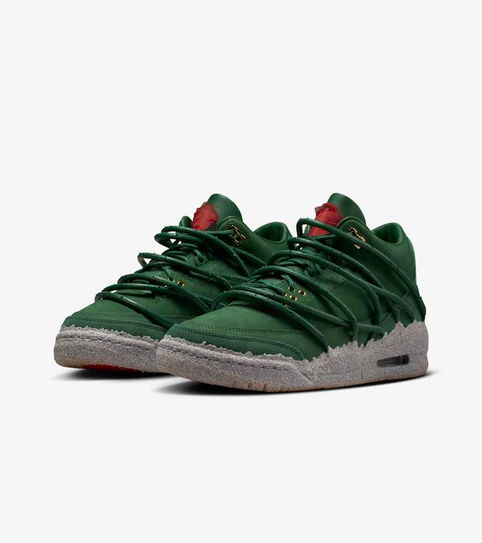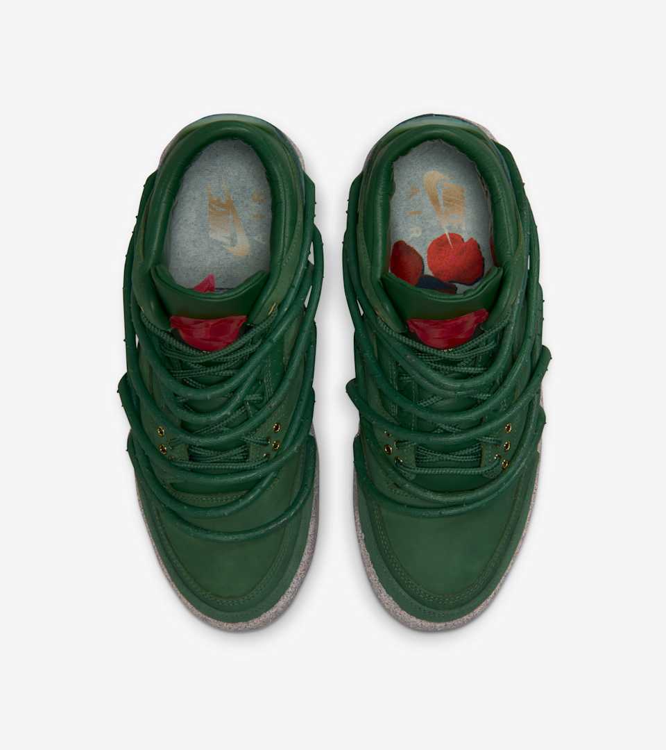 A rose is more than just its petals. Teyana Taylor’s AJ3 honors the protective thorns that have sharpened her on her path to greatness. A premium leather upper in Fir grounds the design, and Metallic Gold details at the laces add the perfect amount of flash. Sculptural TPU vines sprout from the concrete-textured midsole, while roses blooming on the tongue and sockliner are an elegant finishing touch under the fierce exterior.