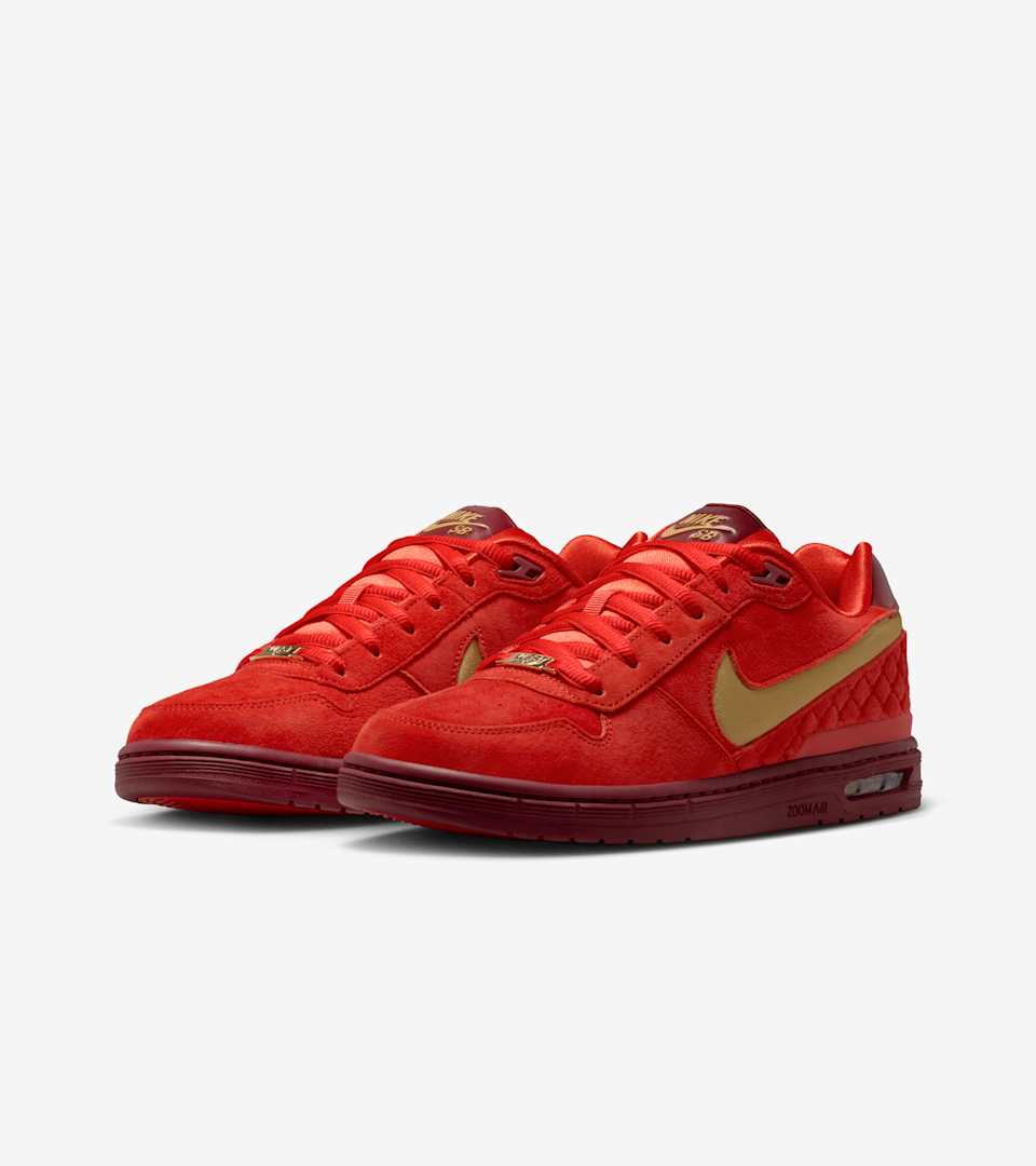 As Nike SB’s first signature athlete with over ten signature shoes on his resume, Paul Rodriguez’s 20-year career with Nike embodies professionalism and a drive that continues to raise the bar. This "Team Red" colorway spices up his OG silhouette in premium leather, plus the signature P-Rod patterned sidewalls that wrap throughout the heel. Designed with a rounded toebox and cupsole construction, it has a semi-translucent outsole with an added plate for impact cushioning. Plus, the flick and feel of the original returns—just as it was drawn up back in 2005. Along with Club Gold accents on the heel branding and eyestay, custom engraved "WEST" dubrae nods to P-Rod's West Coast heritage.