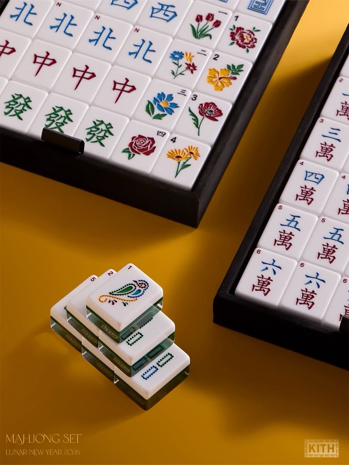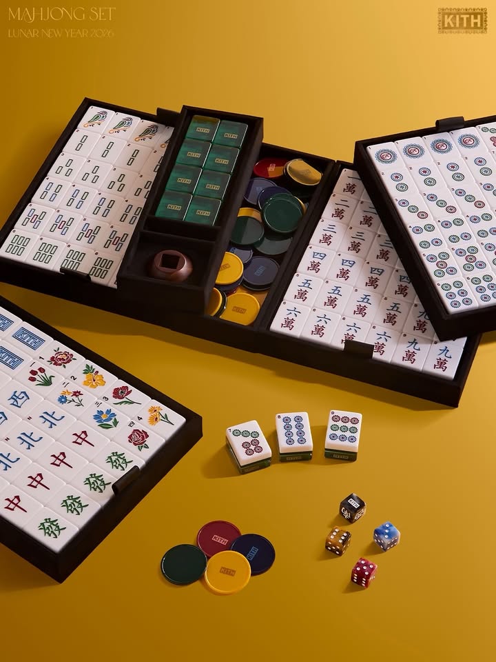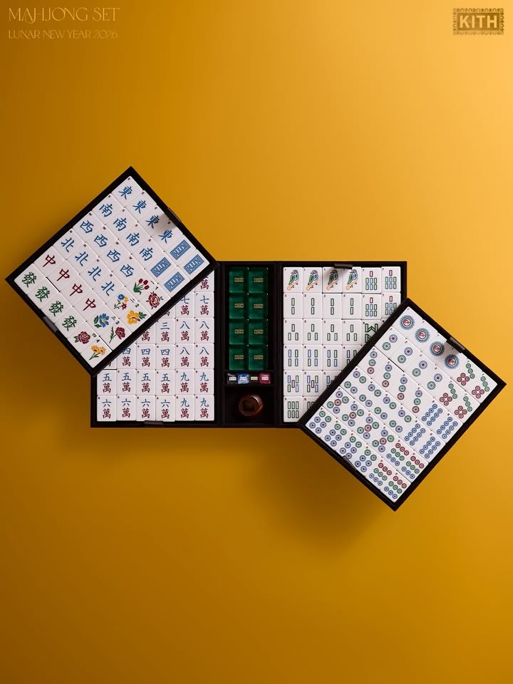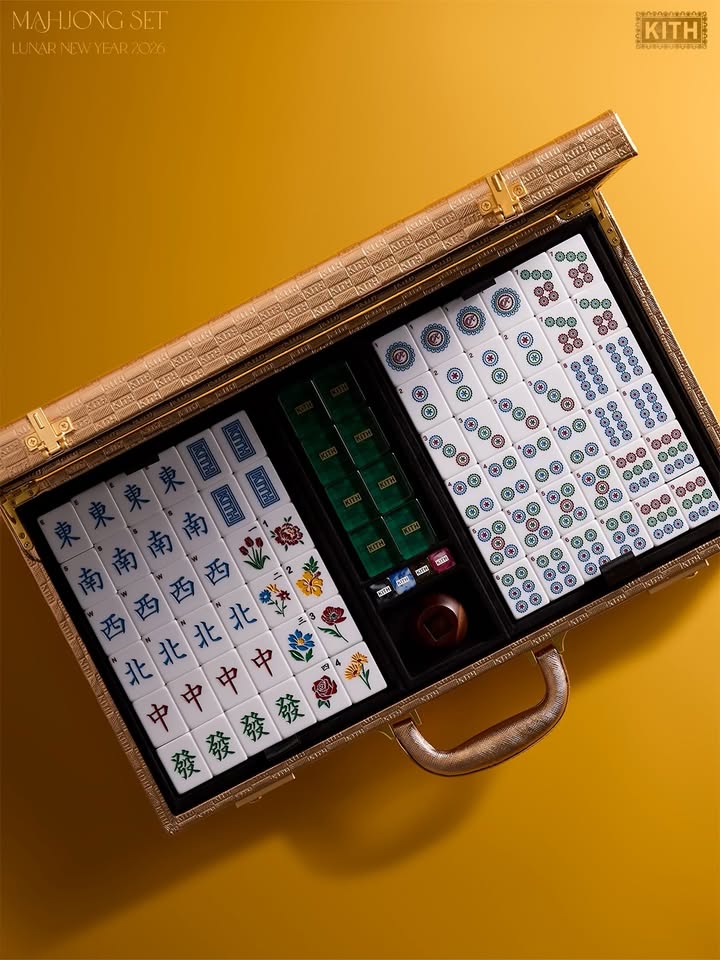 Treats Lunar New Year will release on Monday, 1/26 as part of our Monday Program™ at all Kith Treats shops worldwide, online, and on the Kith App at 11AM in New York, London, and Paris timezones. The centerpiece of our upcoming Lunar New Year capsule collection is a reprisal of our limited-edition Kith Mahjong Set. Encased in premium, gold Kith Monogram Saffiano leather, the custom game set includes classic green Kith Mahjong tiles, mixed horn precision wind dice, a wooden wind dice holder, and multi-color playing chips.