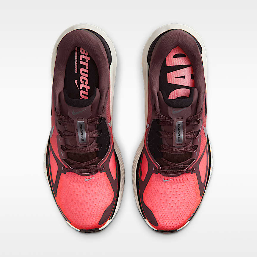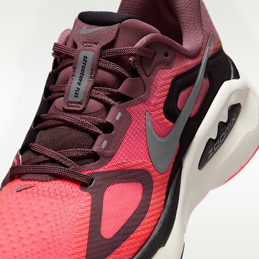 Double-stacked foam creates our most cushioned stability shoes yet. Take supportive cushioning to the next level in the Structure Plus. We stacked responsive ZoomX foam on top of ReactX foam for a smooth, and secure ride. Plus, our midfoot support system helps provide a stable transition from heel to toe. Dialed-Up Cushioning We combined premium ZoomX foam with sturdy ReactX foam to give you an ultra-comfortable, ultra-responsive feel. Trusted Stability Our midfoot support system helps stabilize your foot and securely guide it through heel-to-toe transitions. Dual-Rubber Outsole Soft rubber in the forefoot gives you flexibility while stiff, high-abrasion rubber in the heel offers enhanced durability. Secure Mesh Upper Engineered mesh upper with a secure midfoot band gives you a contained feeling with optimal breathability. Product Details Heel-to-toe drop: 10mm Weight: Approx. 248g/8.7oz (Women's US 8) Reflective details Not intended for use as Personal Protective Equipment (PPE)