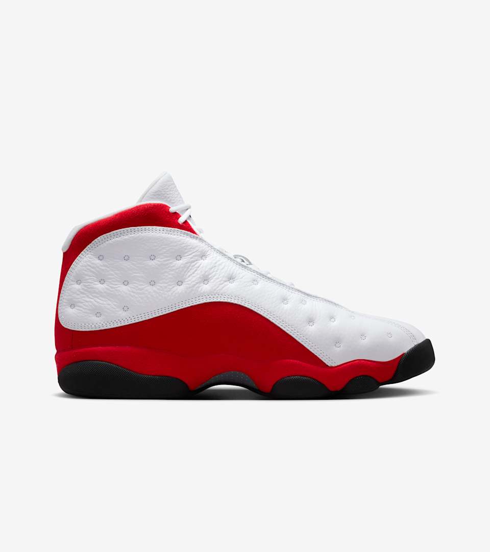 The Air Jordan 13 brings back the memorable shoe that MJ wore during the '97-98 season, all the way to his 6th championship title. From the quilted overlay, sculpted midsole and holographic eye, it comes fully equipped with all the signature details. This edition mixes premium leather and textiles with a classic balance of white and University Red for a game-winning finish.
