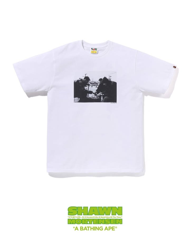 A BATHING APE® (BAPE®) proudly honors its creative legacy with the reissue of exclusive photo T-shirts showcasing iconic works by legendary photographer and artist Shawn Mortensen. This commemorative release pays tribute to a past collaboration that captured the bold spirit and cultural edge of both visionaries.