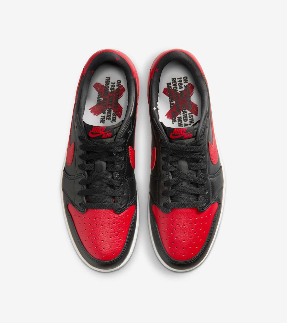 This one's for the disruptors. When MJ stepped onto the court in the now legendary "Banned" colorway, he knew he was changing the game. "Banned" reemerges on this AJ1 Low to remind players that when it comes to style, some rules were made to be broken. The full-grain leather upper is rendered in Varsity Red and black, with the iconic X branding returning on the heel and special edition sockliners nodding to the 1984 story. Special "Banned" packaging keeps the legend going.