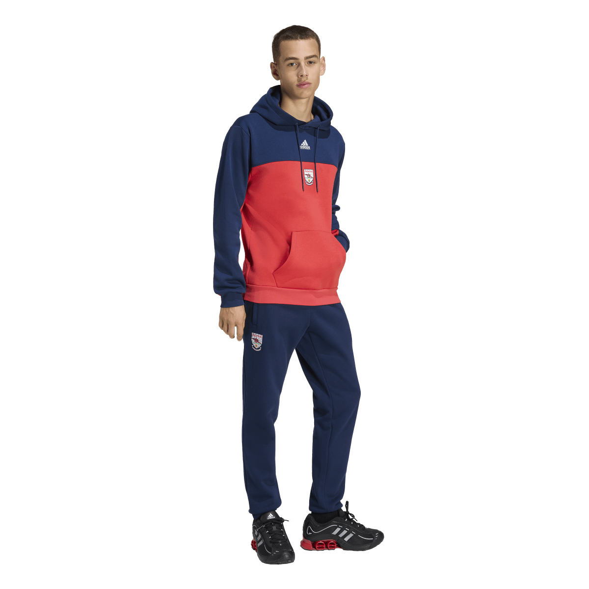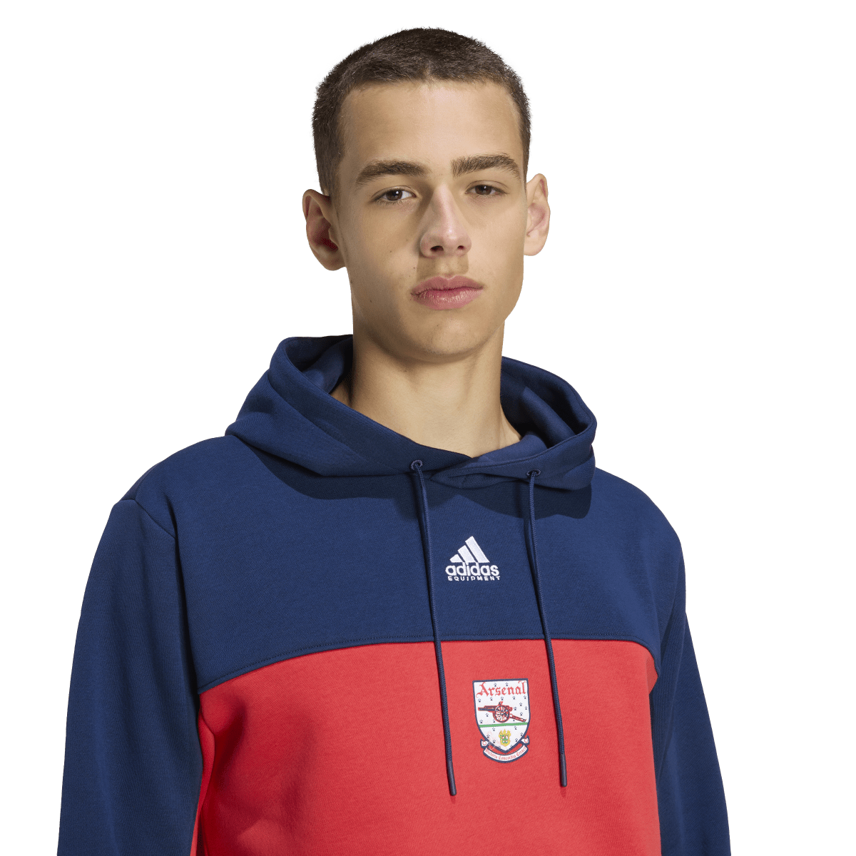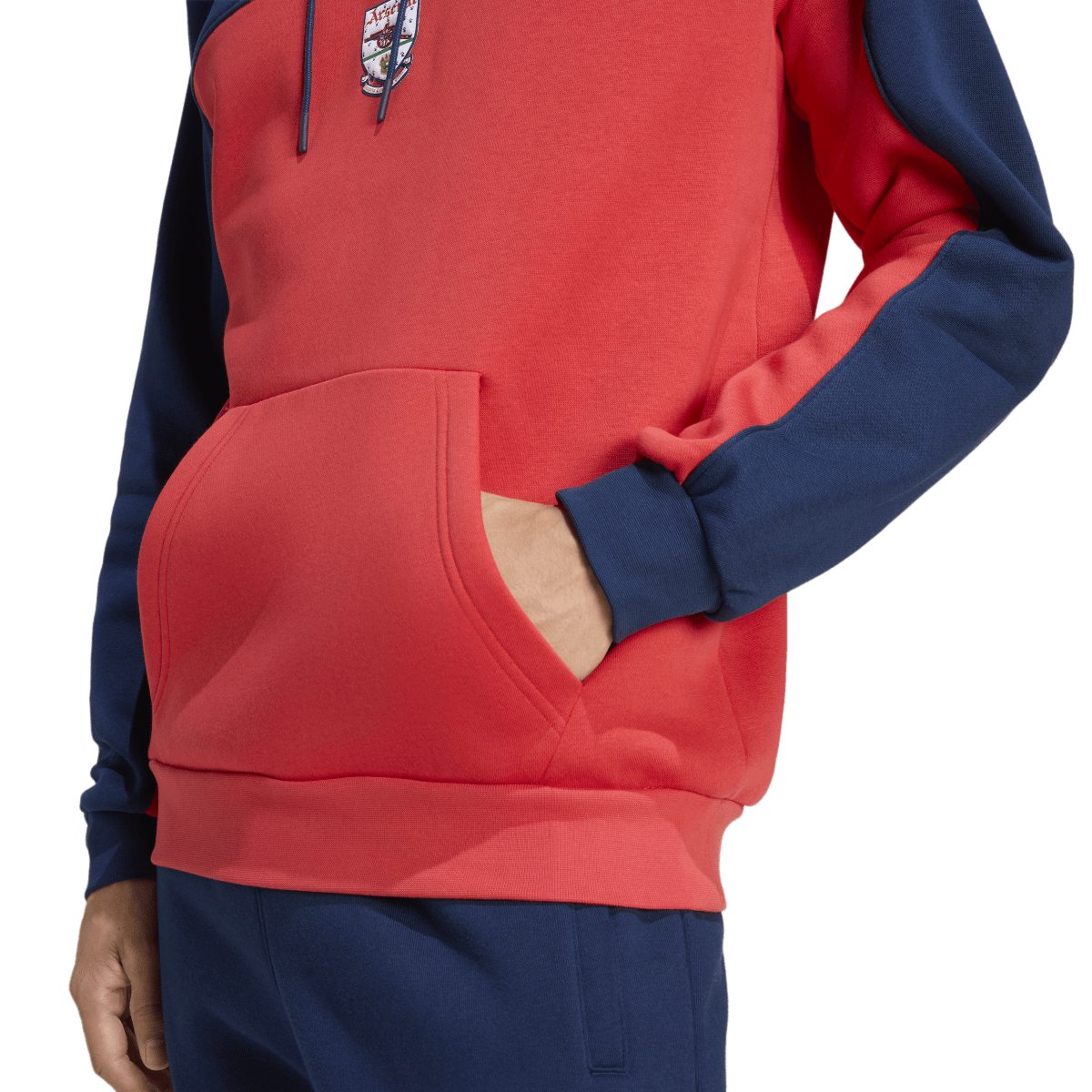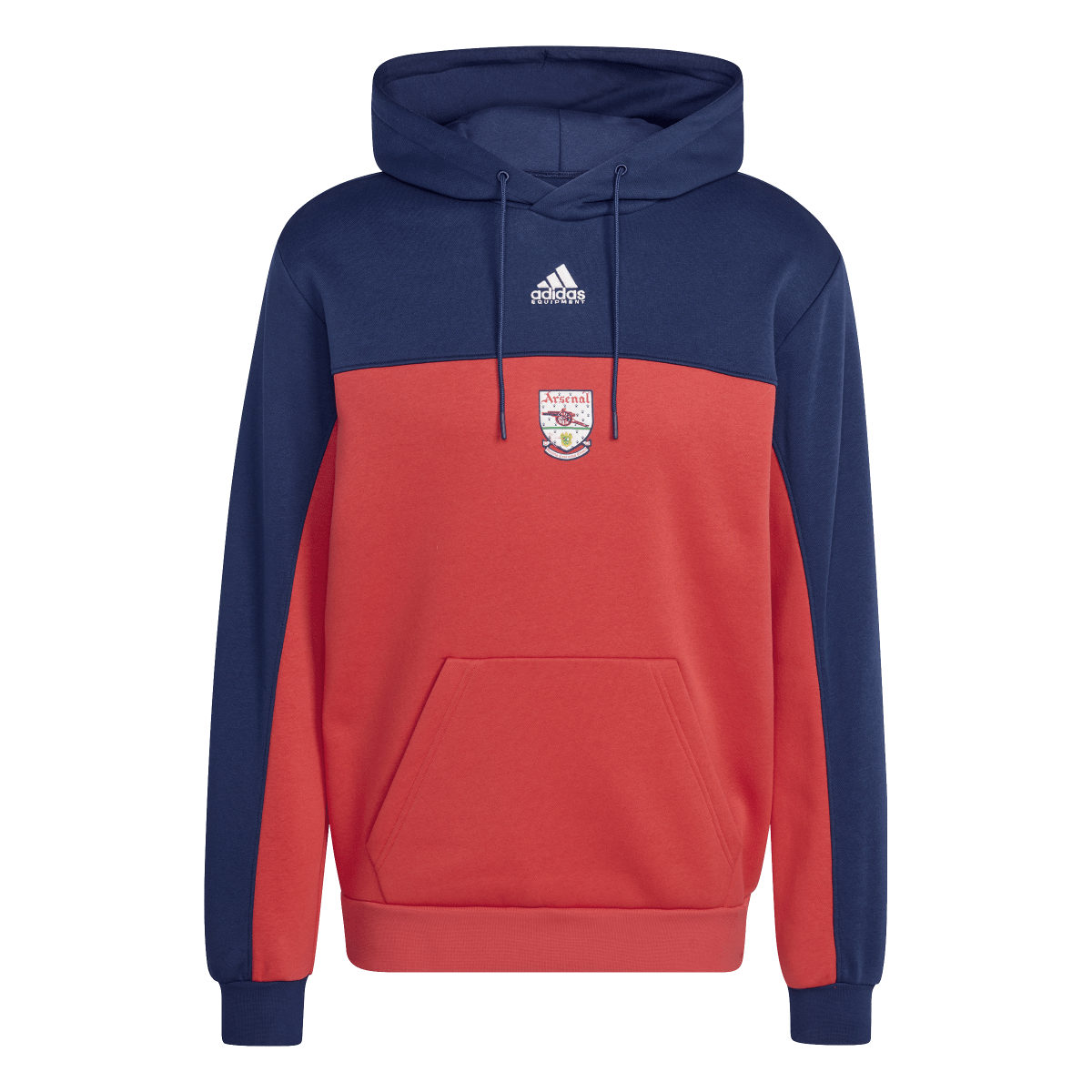 This soccer hoodie taps into Arsenal's silver-lined 92/93 and 93/94 seasons. Part of a special collection that stars a remake of the club's cherished jersey from the period, it displays a pair of adidas Equipment logos and a vintage Gunners badge over red and blue colors. Soft fleece fabric and a kangaroo pocket keep you warm and comfortable while you celebrate a golden era.