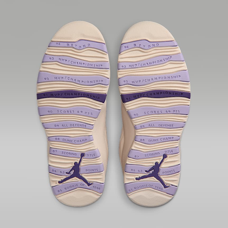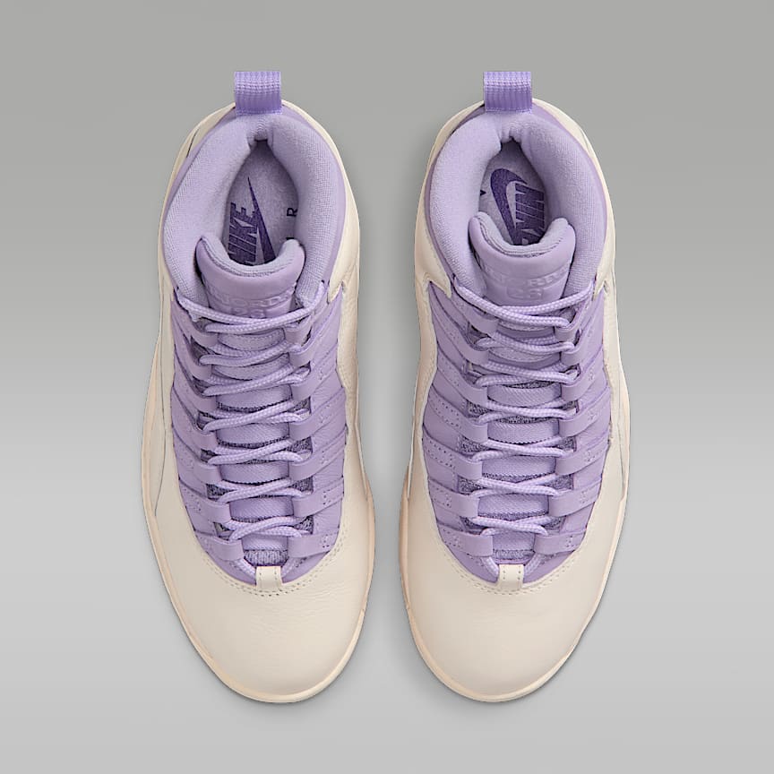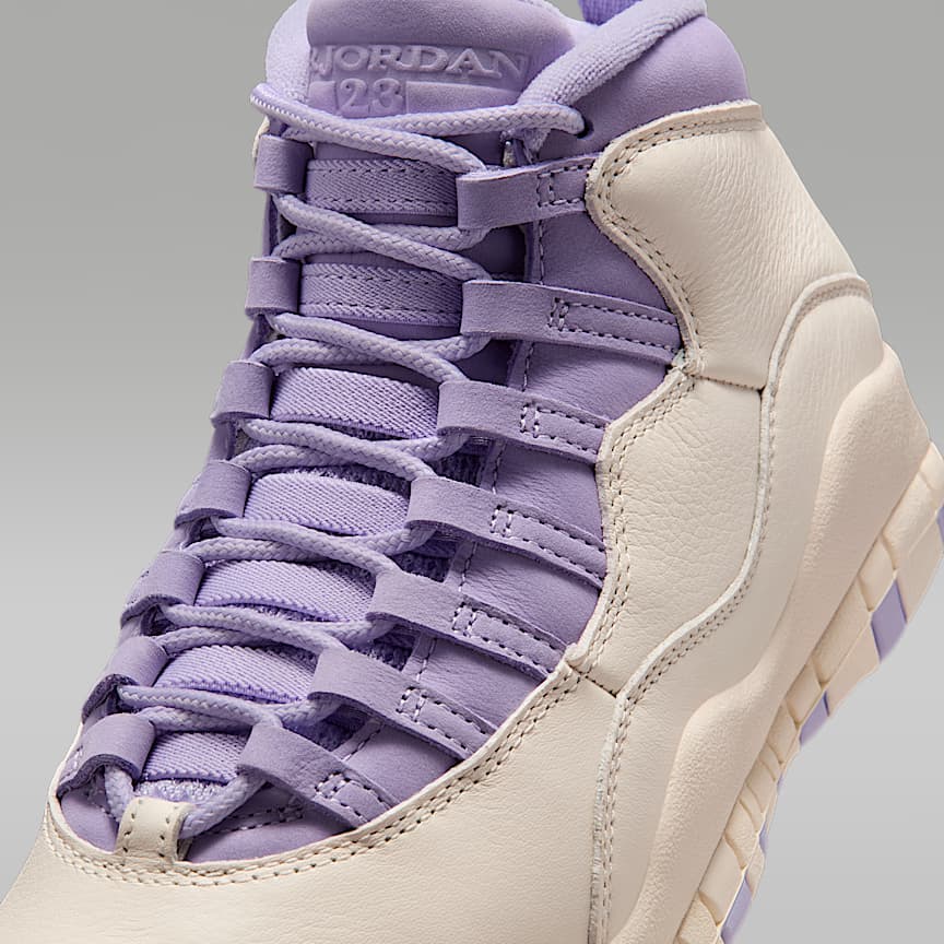 True to its OG form, the "Hydrangeas" edition combines tumbled Chalk leather, webbing and accents with luxe Hydrangea nubuck blooming on the upper. The Jumpman logo on the outsole resurfaces in True Red, and full-length Nike Air cushions the '94 classic. Lace up the ultimate comeback. Benefits Genuine leather upper provides premium durability. Foam midsole with encapsulated Air unit offers plush cushioning. Rubber outsole gives you durable traction.