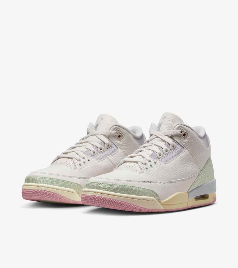 These Jordans are fresher than a spring bouquet. Crisp leather in Sail acts as the perfect canvas for Jade Aura and Iris Whisper details to bloom along the upper. Aura pink on the logo and outsole tie the look together, and elephant print is embroidered on the heel for a delicate finish.