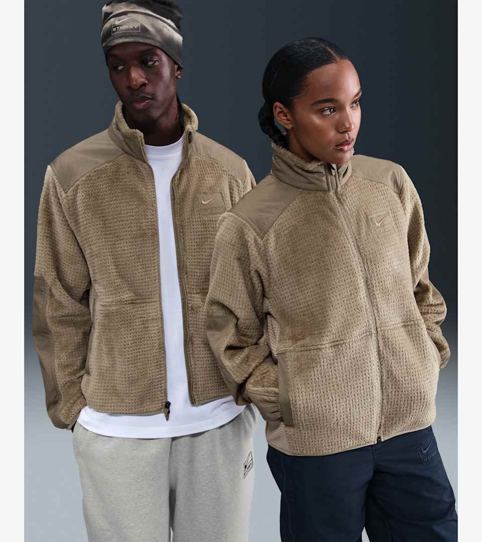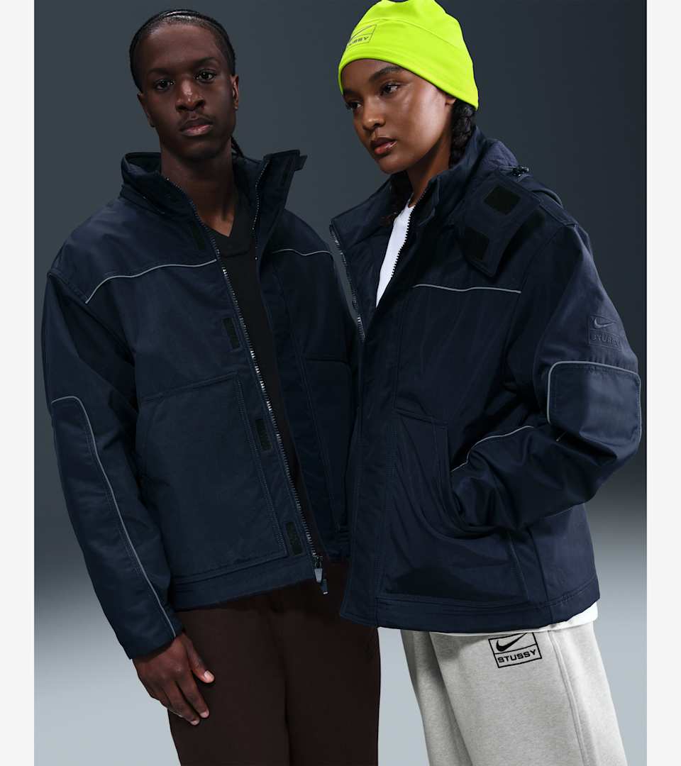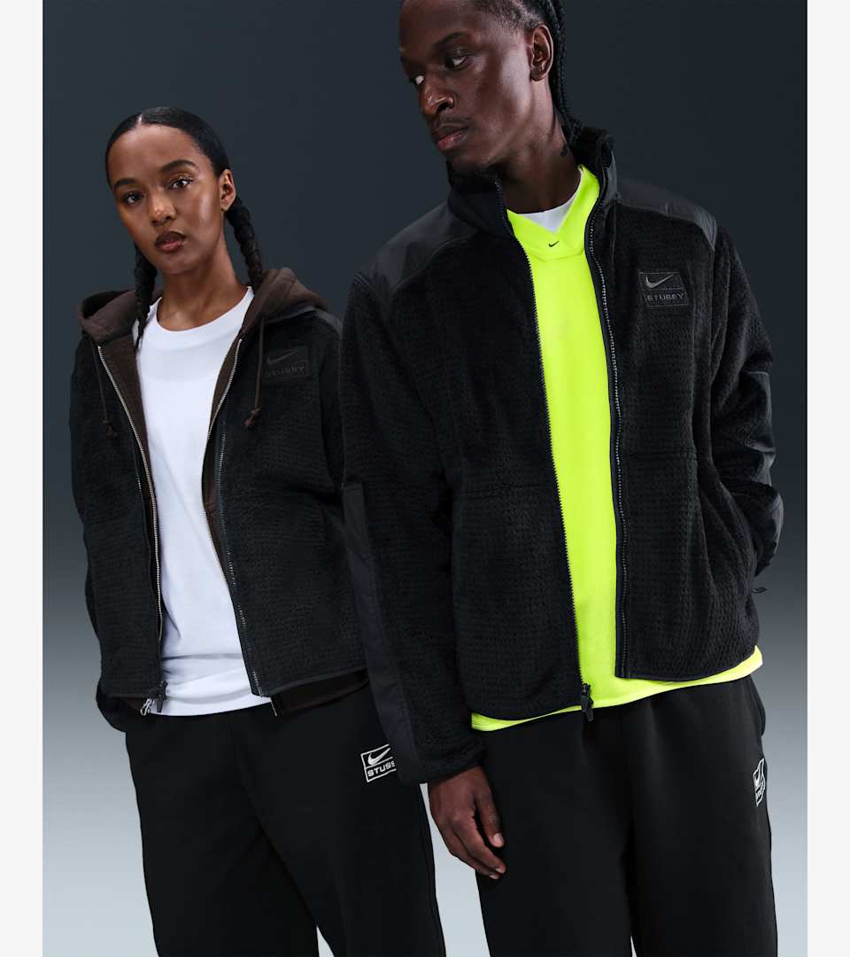 A fusion of technical utility and elevated streetwear style, the Nike x Stüssy collection is rooted in sport, adapted for the city and built for the elements. Inspired by surplus silhouettes, the capsule pulls from Nike's outdoor apparel archive to welcome a fresh take on function with technical jackets and pants, bespoke camo and matching accessories. Adventure with Nike x Stüssy from surf to summit.