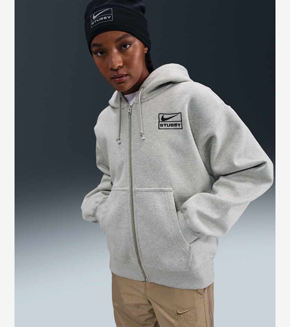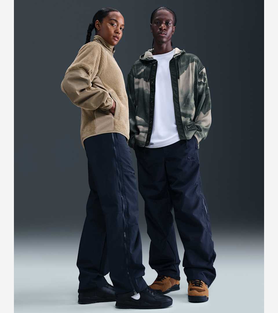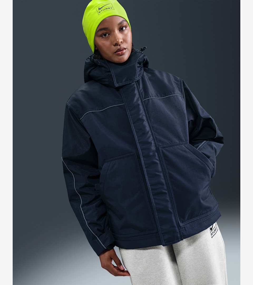 A fusion of technical utility and elevated streetwear style, the Nike x Stüssy collection is rooted in sport, adapted for the city and built for the elements. Inspired by surplus silhouettes, the capsule pulls from Nike's outdoor apparel archive to welcome a fresh take on function with technical jackets and pants, bespoke camo and matching accessories. Adventure with Nike x Stüssy from surf to summit.