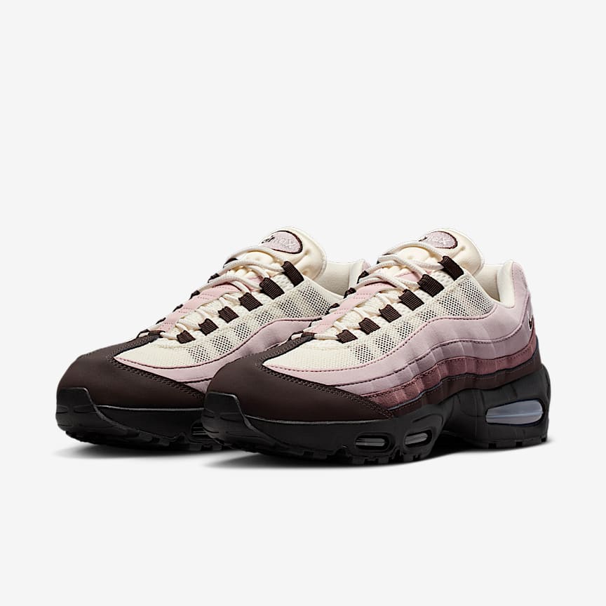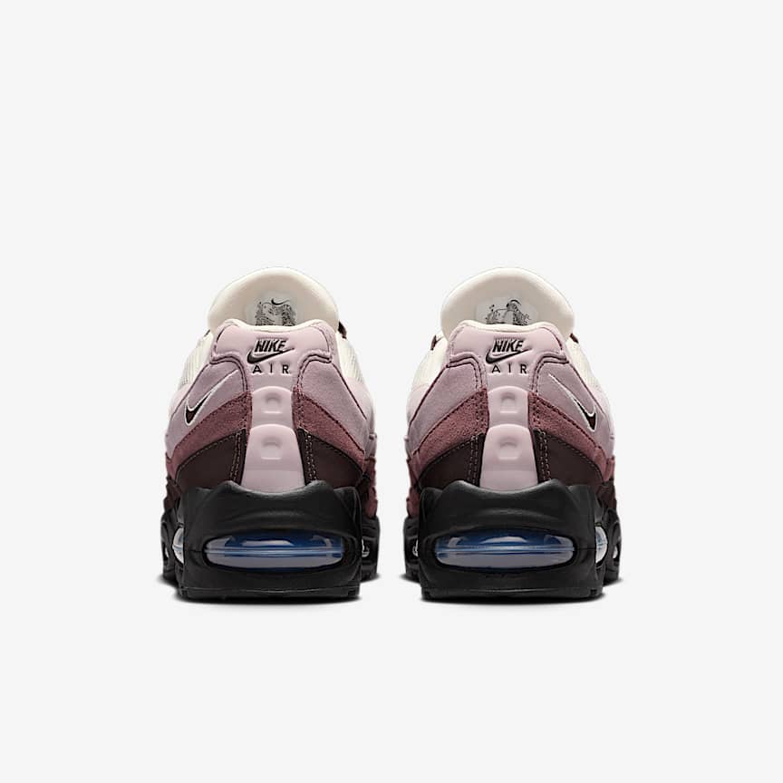 The Air Max 95 originally takes inspiration from the human anatomy and '90s track aesthetics, leading to its distinctive wavy design. This version pairs mixed materials and visible cushioning for a layered look with unbelievable comfort. Benefits Inspired by the human anatomy, the midsole/outsole represent the spine, upper panels are the muscles and the laces are the shoe’s ribs. Textile and leather create a layered look built to last. Visible Max Air cushioning provides lightweight cushioning. Flex grooves in the midsole/outsole let you move freely. Product Details Foam midsole Rubber outsole