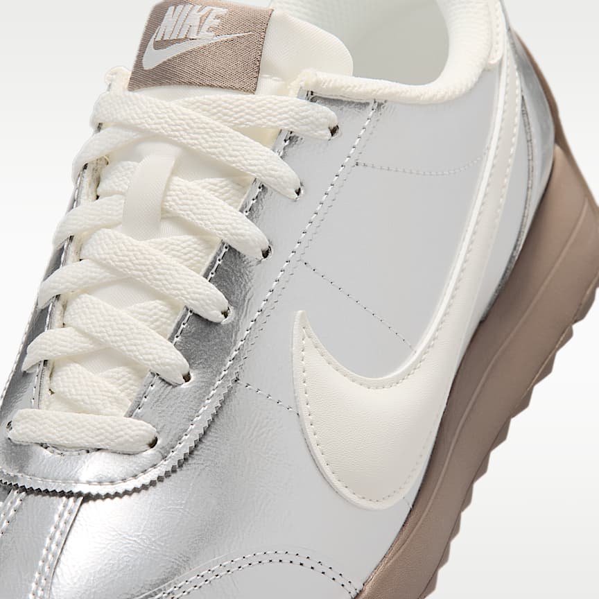 The Nike Pacific takes inspiration from old-school styles to give you a new kind of low-profile look. Synthetic leather is topped with a puffed Swoosh logo, and a herringbone sole with flex grooves adds a '70s vibe with a twist. Benefits Upper is made from synthetic leather with a metallic finish for a bold look. Wide collar opening captures the proportions of '70s running style. Herringbone gum sole with flex grooves provides grip from heel to toe. Product Details Puffed Swoosh logo Foam midsole