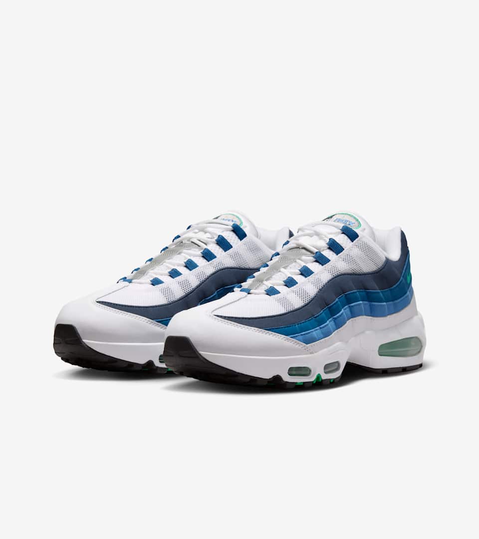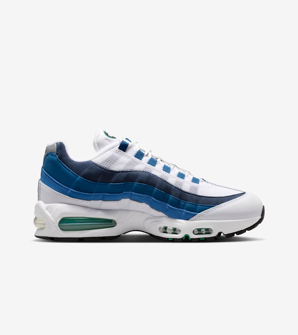 One of the original AM95 colorways comes back for only the third time in the shoe's 30-year history. The stack of Lake Blue, French Blue and Obsidian is just as strong as the day we all started calling this pair of kicks "Slate." And those Emerald Green pops still get it.
