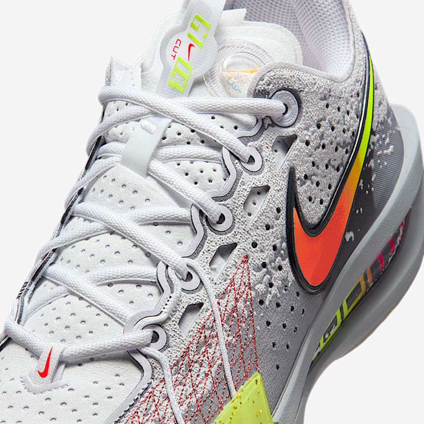 How can you separate your game when it’s winning time? Start by lacing up in the G.T. Cut 3. Designed to help you create space for stepback jumpers and backdoor cuts, its sticky multicourt traction helps you stop on a dime and shift gears at will. And when you're making all those game-changing plays, ultraresponsive ZoomX foam helps keep you fresh for four quarters. Traction: Super High The more traction you have underfoot, the more separation you can create from your opponent. It can help you stop on a dime and shift gears at will. Giving you stop-and-go traction from heel to toe, the pattern on the G.T. Cut 3 is ideal for lateral cuts and quick changes in movement. Responsiveness: Super High The more responsive the shoe, the more energy return you can get back with each cut, pivot and move to the hoop. Responsive shoes help give you more spring in your step so you can feel fast for four quarters. Full-length ZoomX foam adds more bounce into every step without overloading it with ounces, so you can run fast when the action ramps up. Cushioning: High The more cushioning that you have underfoot, the more comfortable your game can be. Cushioning helps soften impact as your feet hit the ground. We paired the ZoomX foam with a foam midsole to help you stay fresh for four quarters. What's New About the G.T. Cut 3? For the first time in our Basketball history, we implemented full-length ZoomX foam that delivers Nike’s highest energy return. A smaller TPU plate on the pinky-toe side of the forefoot helps keep your foot stable when making sudden movements. Secure Feel Flywire cables integrate with the laces to help secure your forefoot. More Benefits Stretchy, breathable material up top is super lightweight and helps keep you cool. Padded collar at the Achilles helps your ankle feel comfortable and secure.