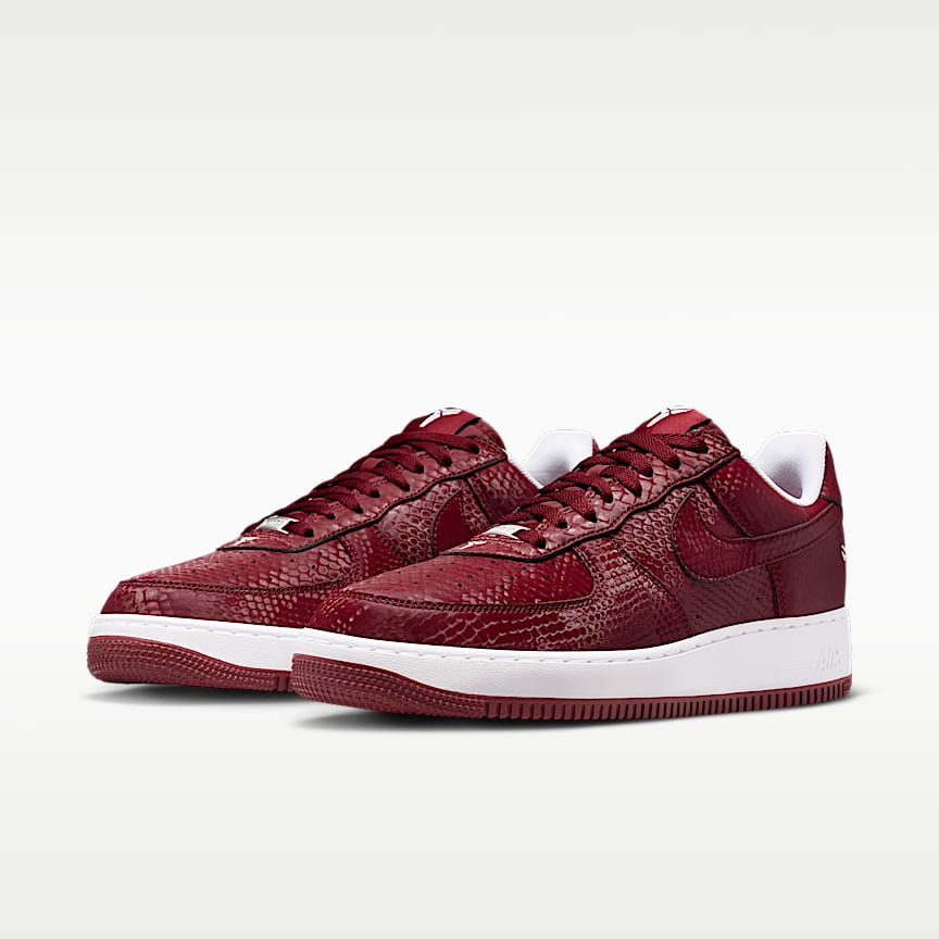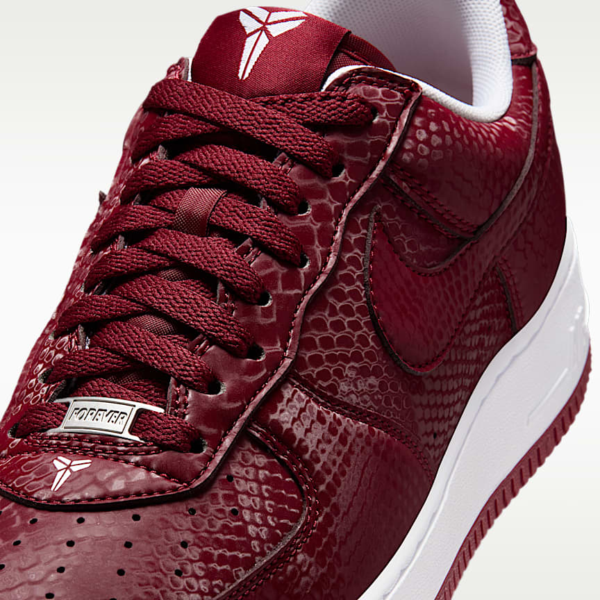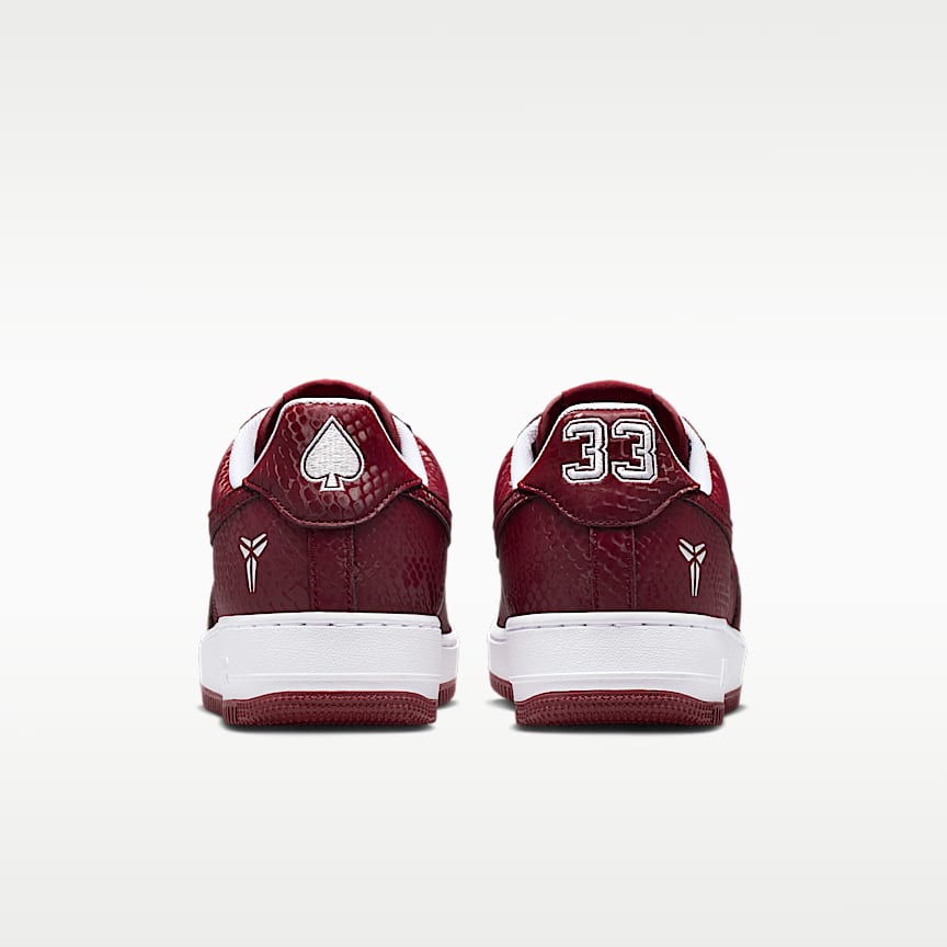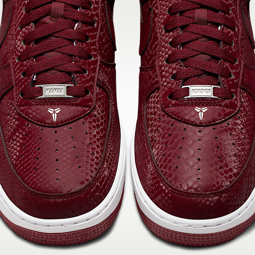 This special-edition AF1 is infused with Mamba DNA, like the allover snakeskin print—putting a distinct spin on an all-time classic. The embroidered "8" and "24" on the heel nod to Kobe's retired jersey numbers, while Sheath logos on the tongue and outer heel add signature branding. Complete with special "Mamba Forever" lace dubraes, this Kobe AF1 continues the legacy. Benefits Synthetic leather upper with perforated toe box is breathable and comfortable. Nike Air unit provides lightweight cushioning. Rubber outsole with heritage hoops pivot circles delivers traction and durability. Product Details Padded collar Foam midsole