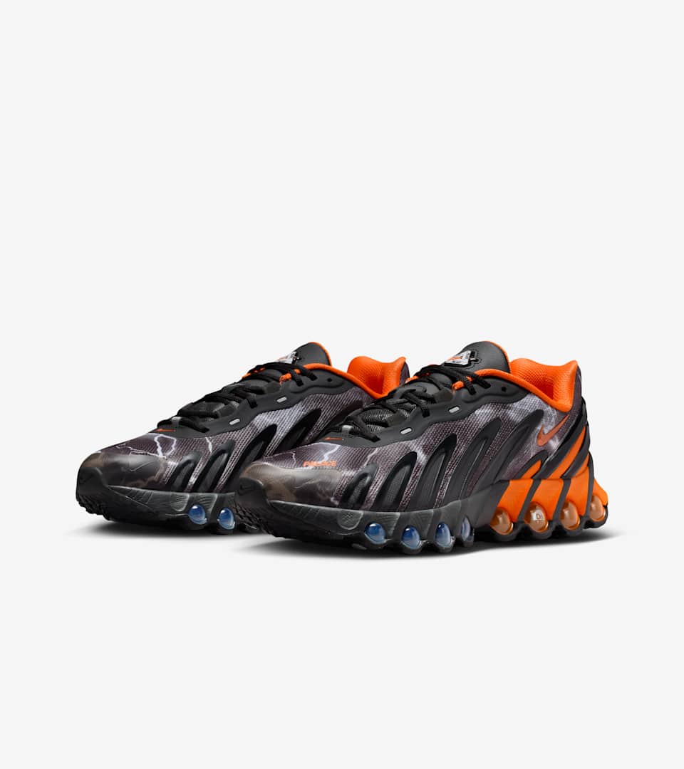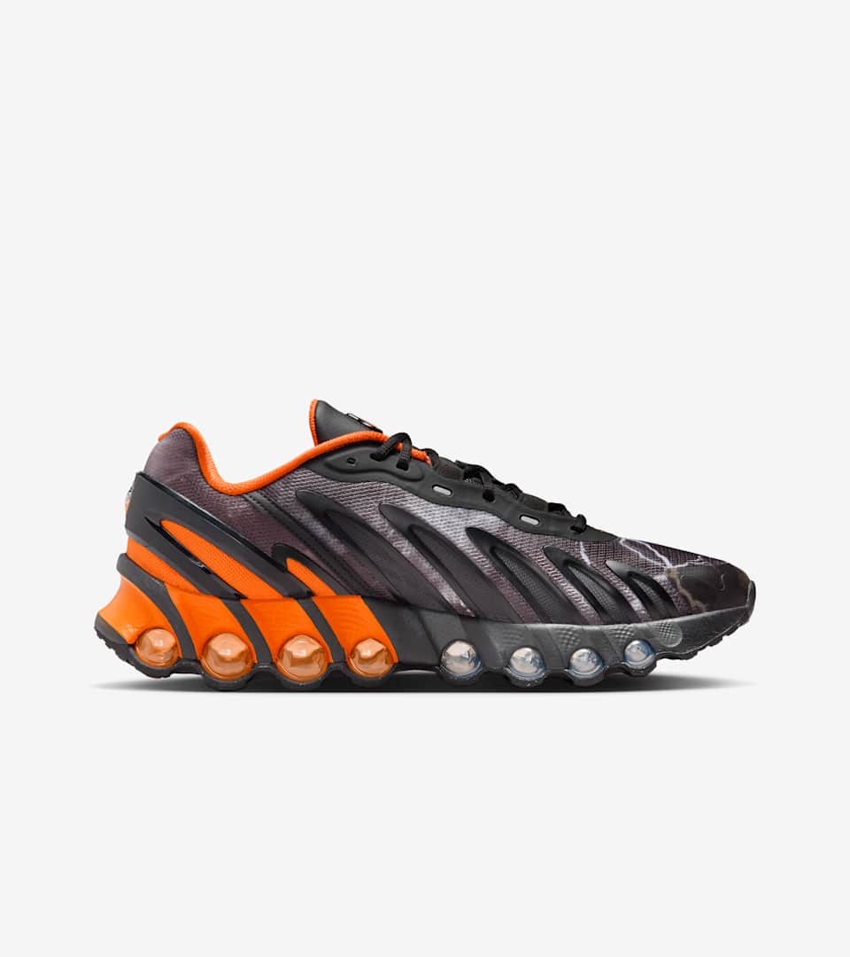 When Palace first saw the Dn8, they immediately noticed the parallels to other iconic Nike models. By leaning into heritage design, they created a shoe with Nike DNA spun in a new, fresh way. The Air Max Plus is channeled through the TPU fingers that slash across the shoe's upper and the Safety Orange hits. Color blocking is inspired by the classic Nike Shox R4. All-over lightning graphics combined with the Nike x Palace branding complete the look for a shoe that knows the past but never stops moving forward.