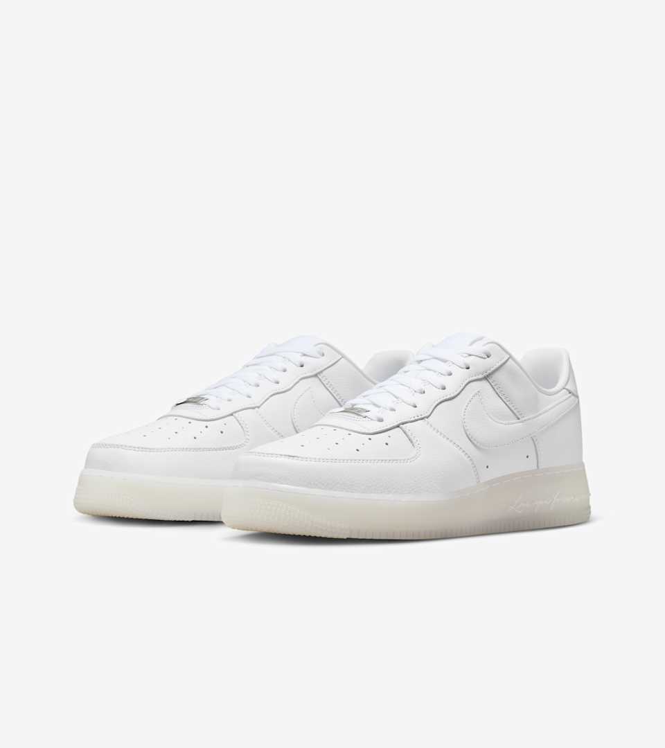 This premium leather AF1 is a love letter to the classic model. Inspired by Drake's favorite childhood book, "Love You Forever," and the sentiment of the phrase, the intent was to enhance the quality of the shoe and add subtle details that would tell the story but wouldn't change the iconic silhouette. The midsole is revised to read “Love You Forever" with complementary hearts that replace the stars on the outsole. Additional design elements include alphabetical beads to customize the lace dubrae, NOCTA logo in place of Nike Air on the left heel and a new perforation pattern on the toe box.