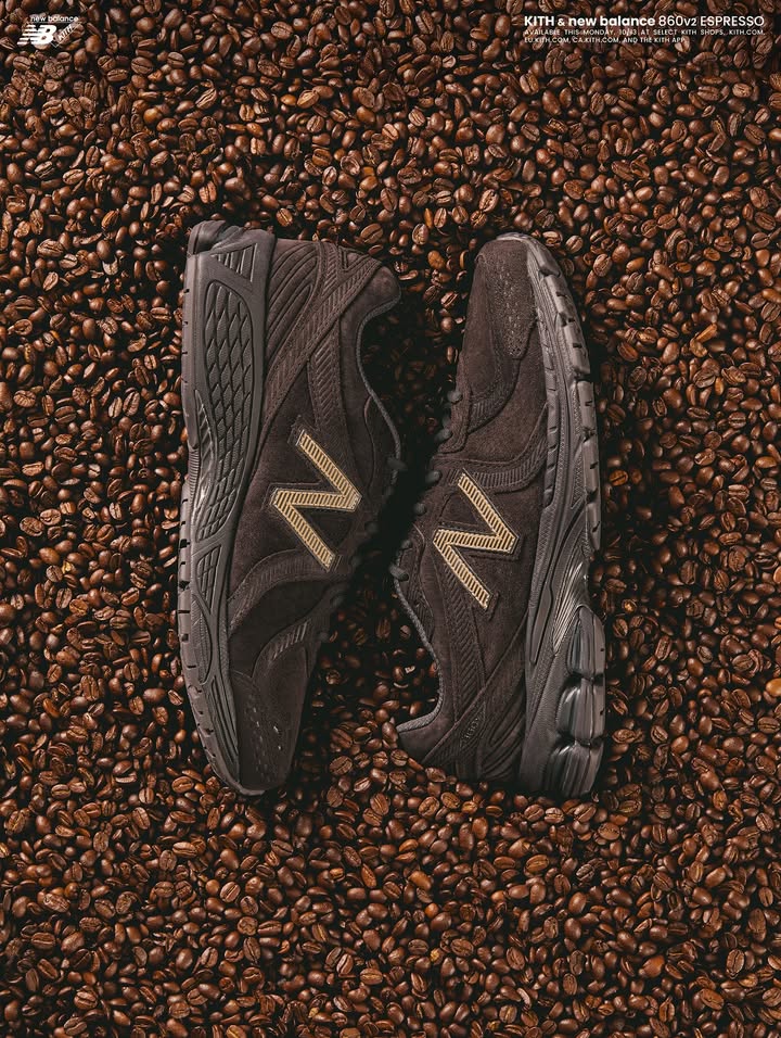 Kith & New Balance 860V2 Our latest partnership with New Balance reimagines the 860V2 in an espresso colorway executed in premium suede. The drawing on the Kith App opens today and closes Sunday, October 12th. Select quantities will be available this Monday, October 13th at 11 AM EST/CET at select Kith shops, Kith.com, EU.Kith.com, CA.Kith.com, and the Kith App.