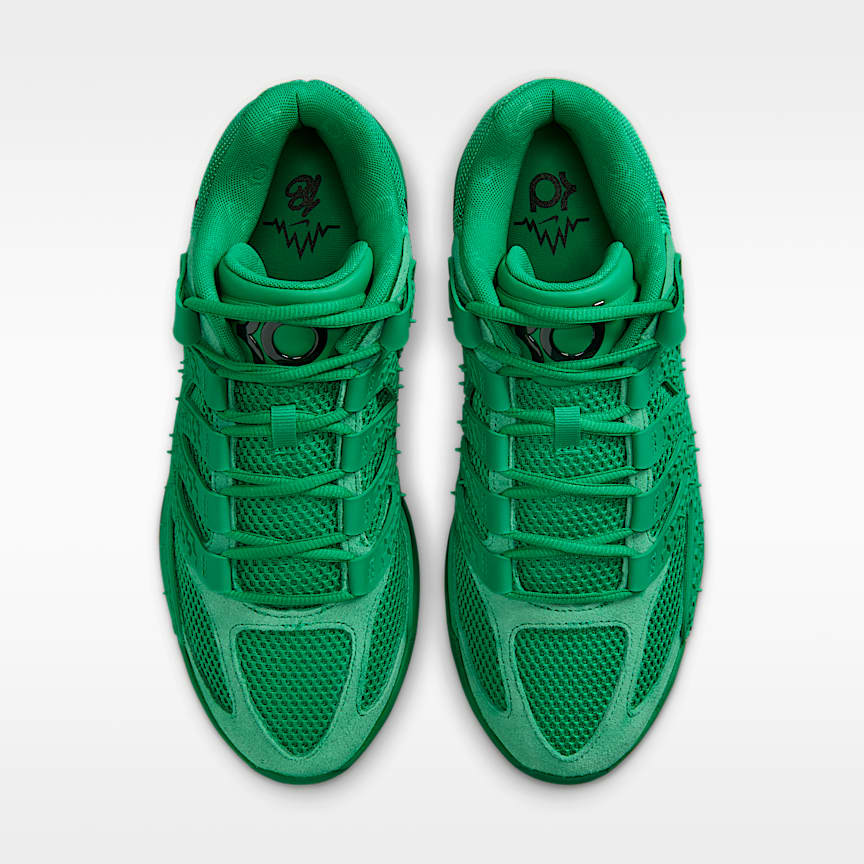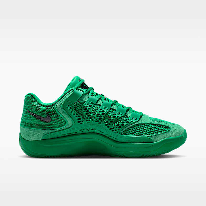 KD’s greatest gift? His stamina. The Slim Reaper never tires, both in terms of passion for the game or energy come crunch time. A combo of Air Zoom cushioning and Nike Air gives him unreal responsive cushioning. And we poked holes all over the upper to help reduce the weight and add breathability, so he can hoop all day. Zoom, Zoom A big forefoot Air Zoom unit offers a different level of velocity when exploding, either on the dead run or out of a standstill position. It offers a different level of snappy pop when the game revs up. Our latest version of Cushlon foam adds a soft, comfortable sensation and freshness for four quarters. Pop Your Steps The bottom layer of the upper has Nike Air cushioning at the heel to add a pop in your step. A strong plastic plate directly underfoot conforms as you flex. It works with the forefoot Air Zoom unit to give you a snappy first step while also providing support and stability. Stay Contained A tough plastic cage helps keep you upright and offers firmness on both sides of your foot.