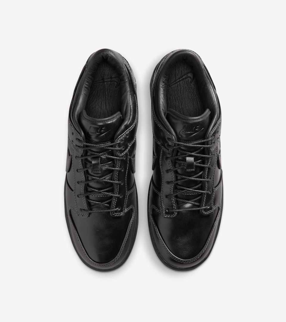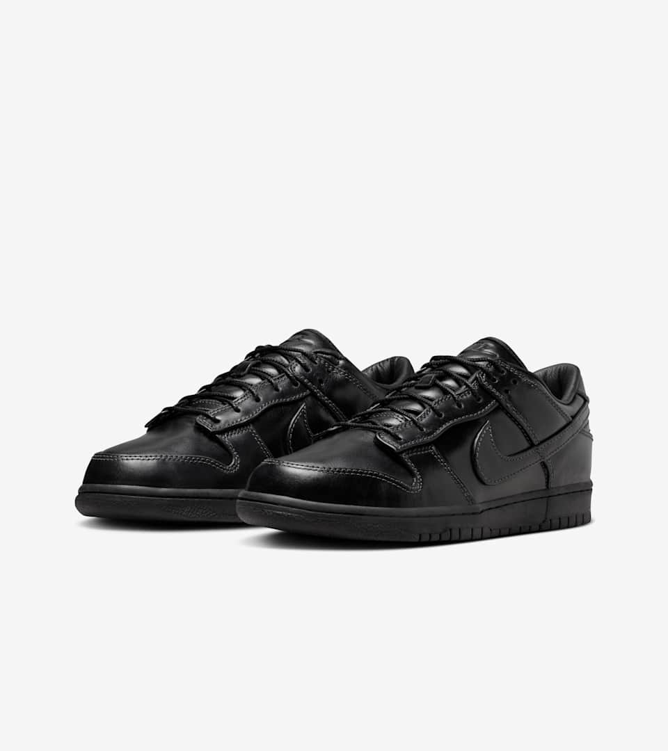 The Dunk Low lives forever, and for good reason. This all-leather premium edition of the classic shoe pairs black with black with even more black for a sleek look.