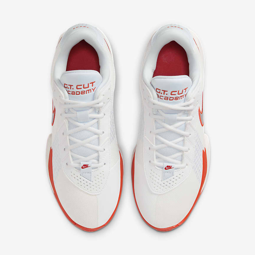 Whether you're playing in the gym, at the park or on your driveway, lace up in the all-new G.T. Cut Academy. Designed to help you create space for stepback jumpers, backdoor cuts and other game-changing plays, its sticky multicourt traction helps you stop on a dime and shift gears at will—wherever your next game is calling you. Traction: High The more traction you have underfoot, the more separation you can create from your opponent. It can help you stop on a dime and shift gears at will. Giving you stop-and-go traction from heel to toe, the herringbone pattern on the G.T. Cut Academy is ideal for lateral cuts and quick changes in movement. Responsiveness: Moderate The more responsive the shoe, the more energy return you can get back with each cut, pivot and move to the hoop. Responsive shoes help give you more spring in your step so you can feel fast for four quarters. A bottom-loaded forefoot Zoom Air unit helps you play fast on the floor when the game goes uptempo. Cushioning: Moderate The more cushioning that you have underfoot, the more comfortable your game can be. We stacked the midsole with two foams, giving you an unreal level of comfort and support. It's perfect for long hoop sessions on unforgiving surfaces.