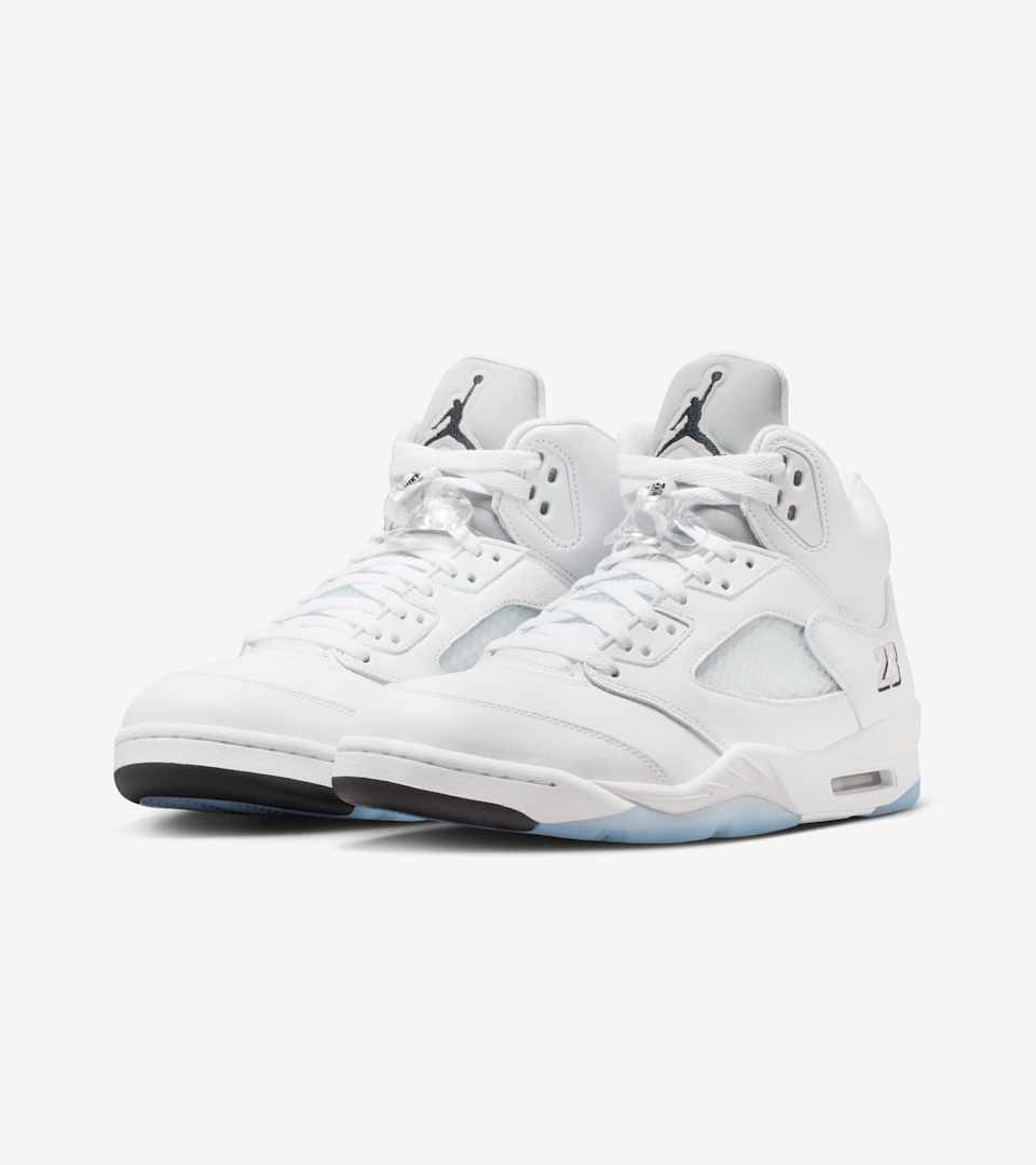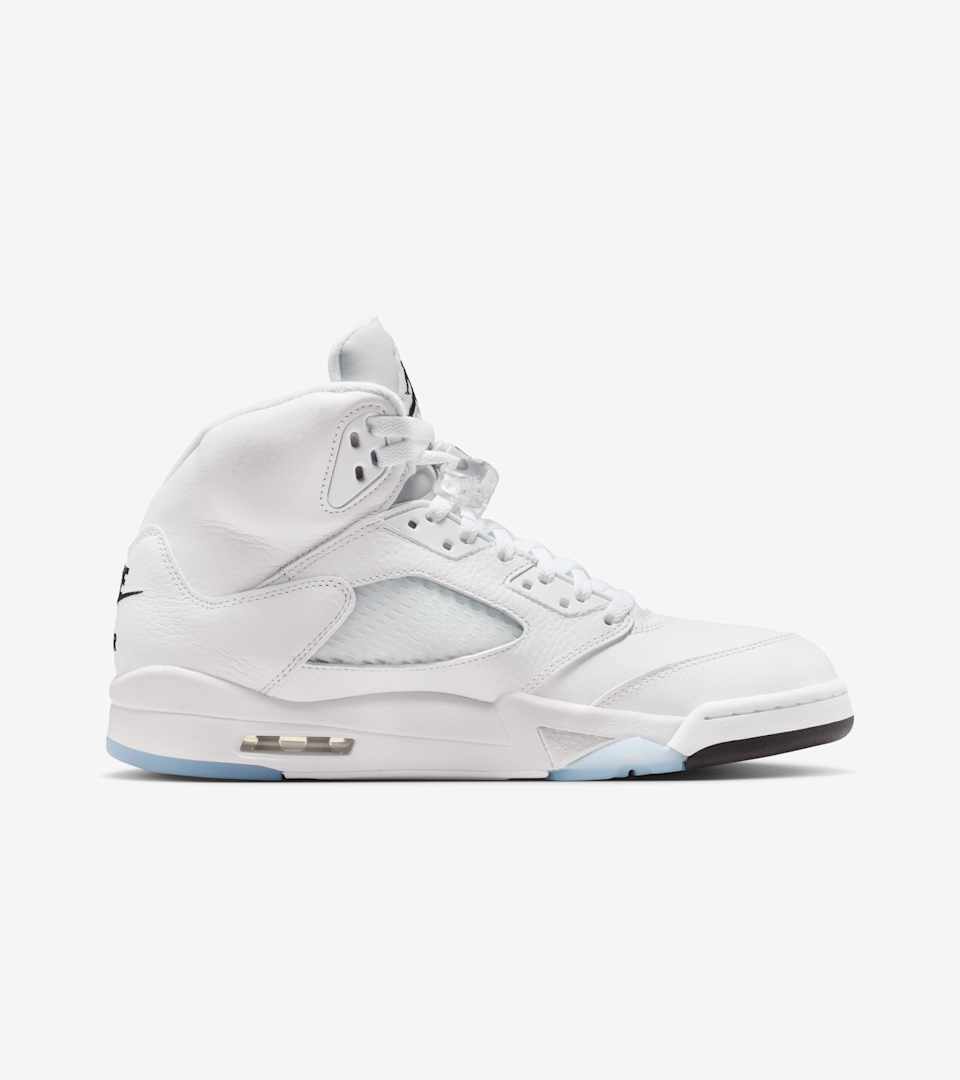 Get your piece of Jordan history with the Air Jordan 5 Retro. Based on the classic game shoe from 1990, it has all the iconic details like the bump-out collar, lace toggle and fighter plane-inspired design lines. The crisp white upper is balanced with Metallic Silver details and a translucent outsole, then punctuated with Nike Air branding at the heel to complete the classic look.