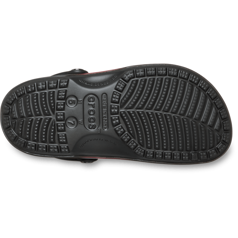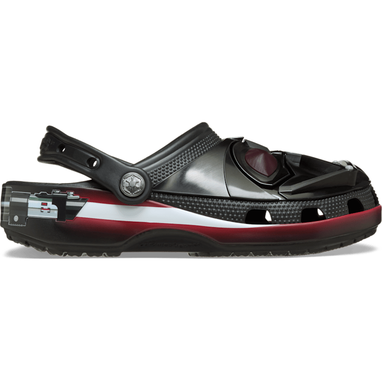 This glossy Classic Clog style from the STAR WARS™ collection was inspired by the Sith Lord, Darth Vader. The iconic Sith Lord’s dimensional mask sits upon the clog’s upper. A piercing red band, like the Sith’s signature lightsaber™s, strikes brightly around the clog’s sole with printed character details on the outer edges and heel cup.