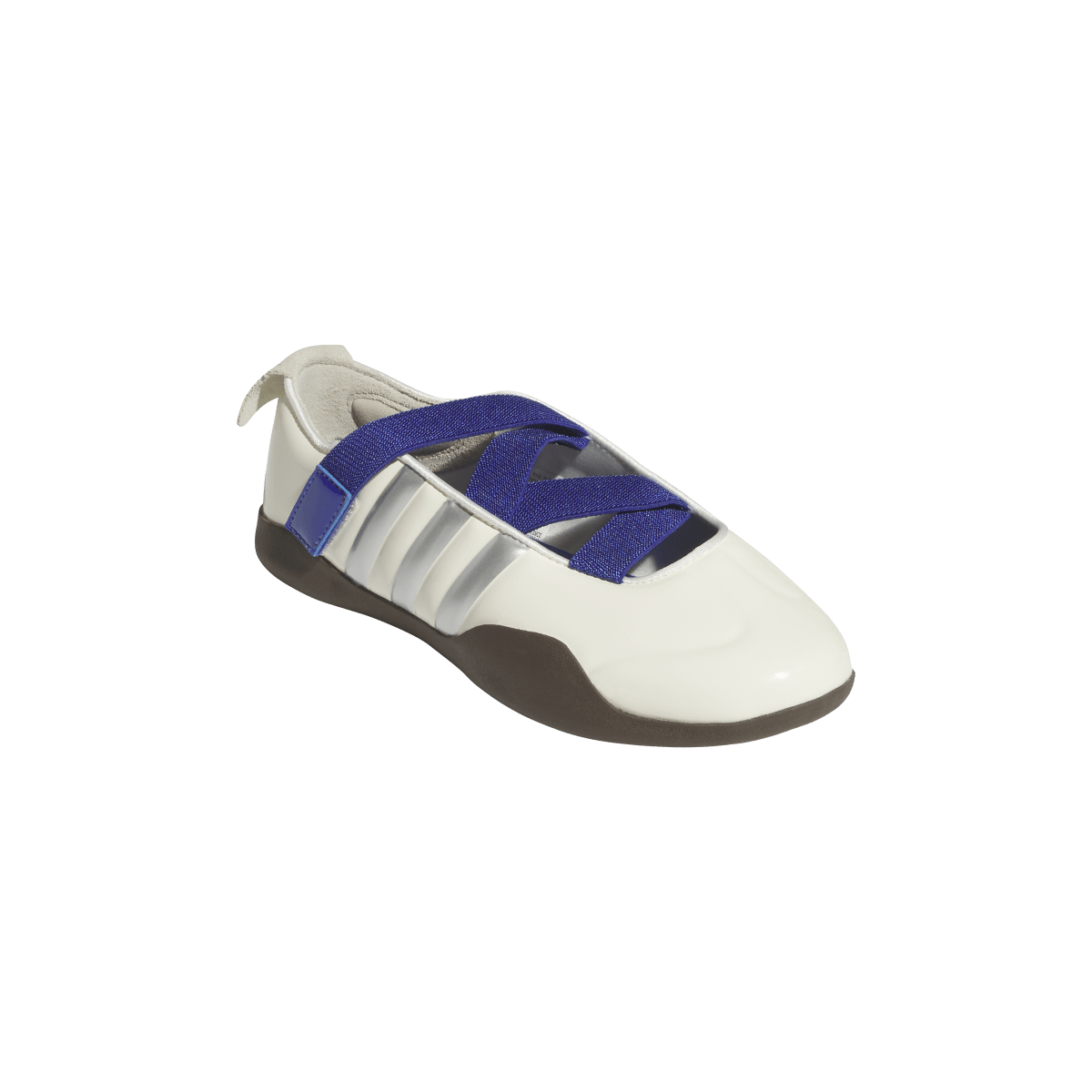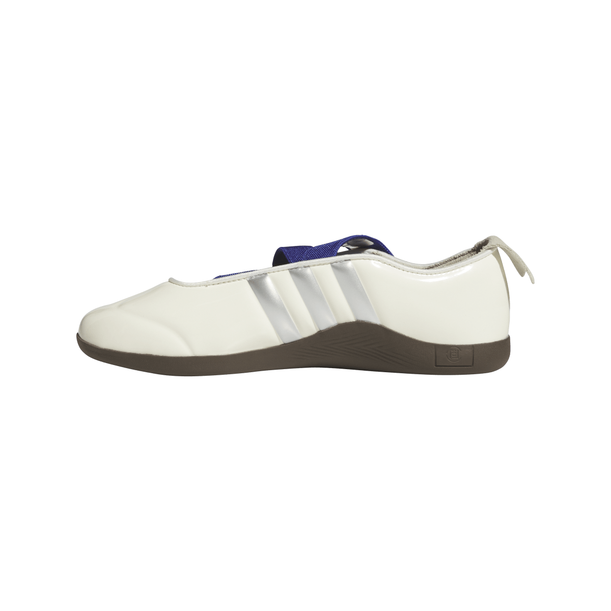 The CLOT Taekwondo by Caroline Hú x Edison Chen gives the adidas classic a sculptural new expression. Designed with a ballet-inspired shape, it features a synthetic upper with a sleek finish, secured by hook-and-loop straps that nod to both utility and style. Cold Cement construction offers a durable yet lightweight build, while the textile lining softens every step. A rubber outsole ensures steady traction across city pavements or casual outings. Available in three versatile colorways, the CLOT Taekwondo adapts easily from laid-back wear to elevated styling, reflecting Hú's refined sensibility and Chen's contemporary vision.