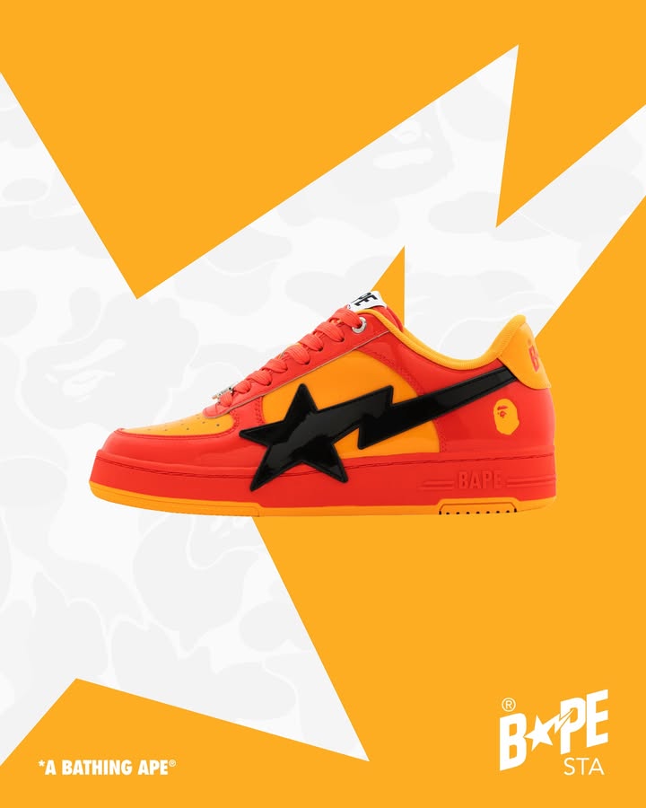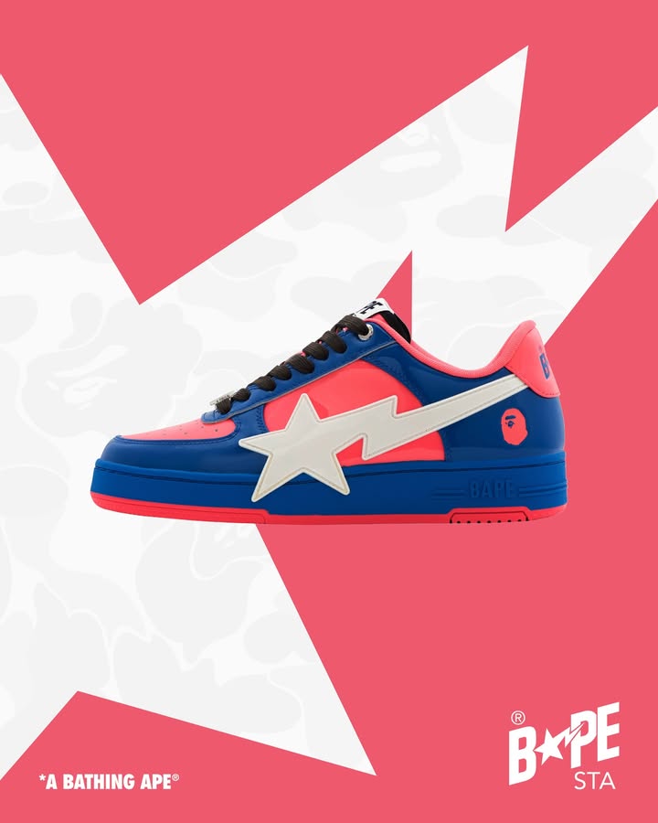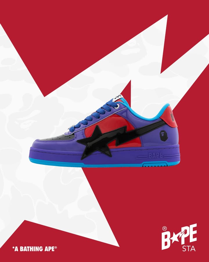 BAPE STA™ OS RETURNS: A Bold Tribute to Retro Pop Culture Inspired by early American comic book covers and the vibrant aesthetics of 60s and 70s movie posters, magazine comics, and toy packaging, the latest BAPE STA™ OS redefines street style. For the first time ever, this iconic silhouette is crafted in colorful patent leather, bringing fearless energy and a fresh twist to a classic. Available starting Nov 29th, at BAPE STORE® and US.BAPE.COM.