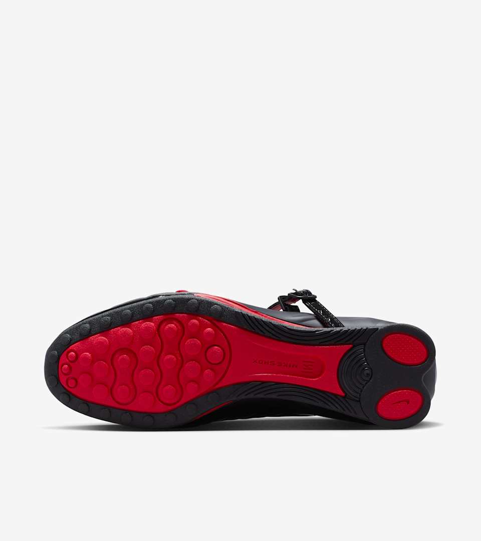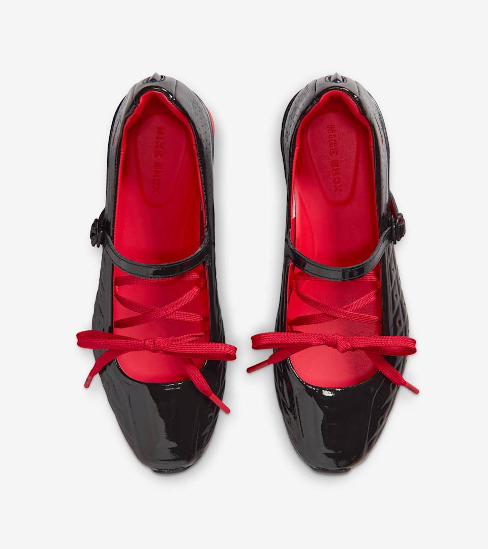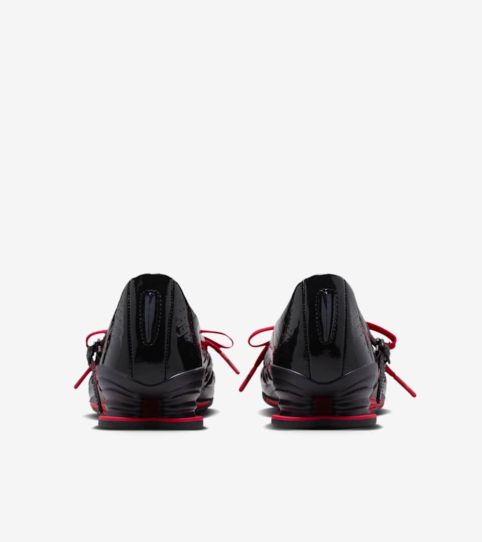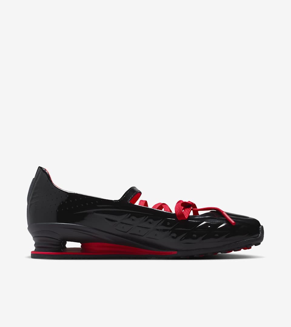The Nike x LABELHOOD Shox Z Calistra draws on the beauty and craftsmanship of black pottery to create a dazzling shoe with understated depth. At first glance it's an invitation to see what makes this ballet flat special. Notice the molded patent leather upper with its subtle sheen, the floral detailing on the strap, the commanding bursts of University Red in the Shox columns. Imagine the ease with which you could slip into these elegant shoes, the places you could go, looking effortlessly chic all along the way.