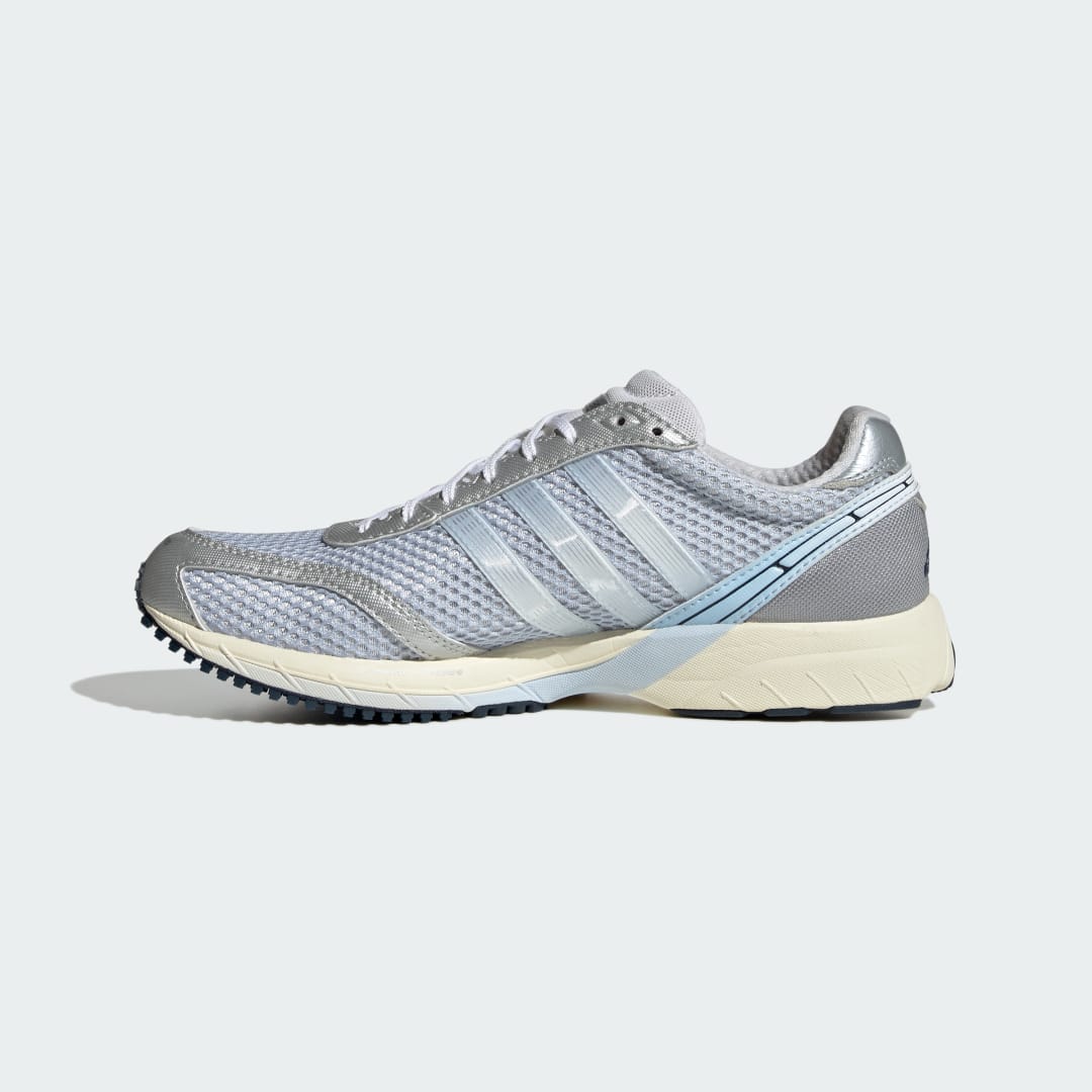 The eye-catching adidas Adizero Adios OG Shoes capture the essence of the original design, bringing back those iconic details that made it stand out first time around. With a color-faded two-layer mesh upper in silver, gray and ice gold, and reflective details, these shoes are built to turn heads on the street.