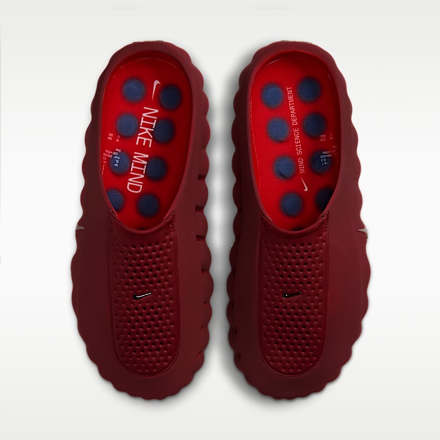 What if you could enhance your pregame routine with a mind-altering shoe? Meet the Nike Mind. Its large outsole nodes push against your foot as you step, engaging sensory areas of the brain to help you stay present and connect with your surroundings. Because when it's anyone's game, winning is all in the mind. Activate Your Senses Developed in Nike's Mind Science Department, 22 nodes move up and down against your foot in a way that is scientifically shown to activate sensory areas of the brain. Prep in Comfort Soft foam in the midsole provides robust, comfortable cushioning. Stretchy fabric on the footbed gives the nodes room to move up and down while still feeling soft against your foot. If you generally purchase a 1/2 size, we suggest sizing up for a comfortable fit. More Benefits Rubber pods near the toe and heel help provide durable traction. Knit tongue feels soft and features perforations for breathability.