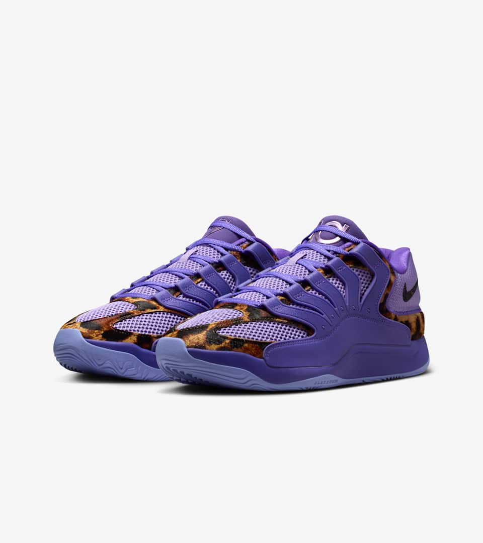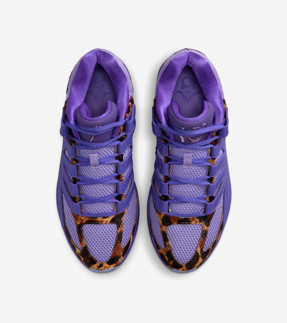 KD helped pave the way for slim 7-footers like Chet Holmgren to get into their bag and dream about the absurd, not convention. This Chet x KD18? Goes crazy, of course. Leopard mohair hits riff with deep pure purple as a rocked out homage to Chet’s proud Minnesotan roots. And check Chet’s logo on the tongue, #7’s stamp on a smash hit debut.