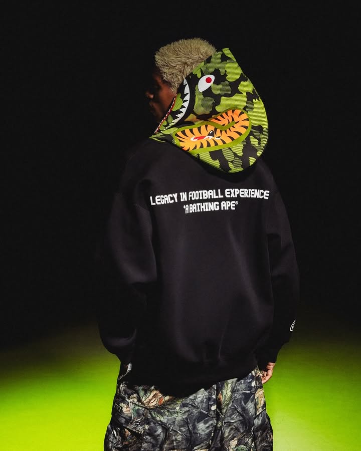 CR7® LIFE x BAPE® Drop 3 is here! This latest release showcases iconic Ape Head tees featuring comic-style artwork of Ronaldo, alongside a BABY MILO® tee that adds a playful twist to the collection. Completing the drop is a standout Shark Hoodie that merges BAPE®’s signature camo with bold CR7 patchwork, creating an unmistakable statement piece.