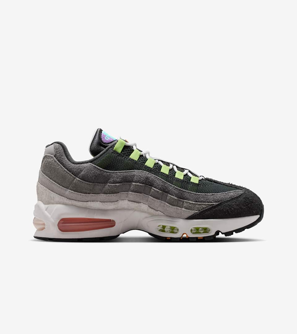 Mismatched, asymmetrical, greedy. Call it what you want. This AM95 takes bits and pieces from the shoe's long history and uses them to accent the hairy suede gradient upper. How many of those colors can you name?