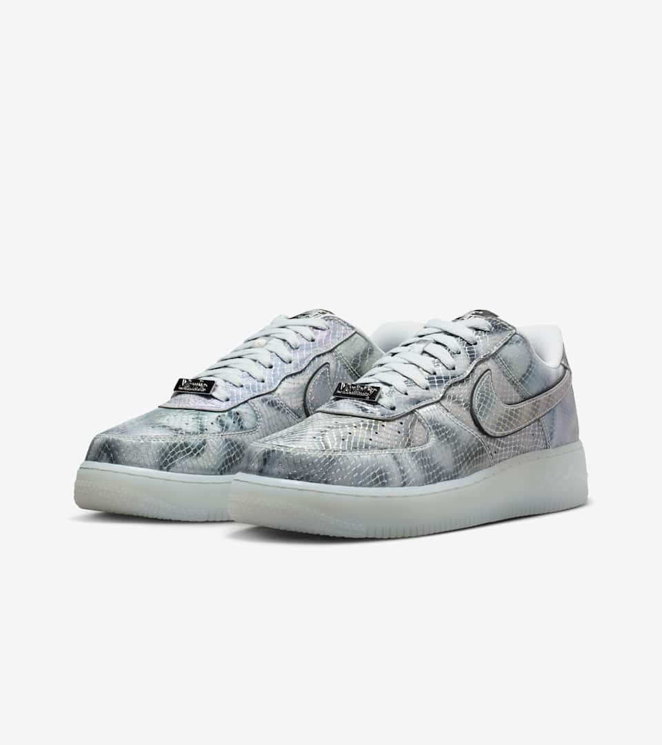 Super sleek, constantly shifting and ready for anything. This snake pattern edition combines modern comfort with innovative visual technology. The lenticular upper shifts between hues of purple, gold and black, branded with a rainbow Swoosh logo that makes a statement even in the dark. This AF1's star-patterned outsole is replaced with repeating Sheath logos, and custom Kobe dubraes adorn the laces. Finally, like every Kobe Protro model, this AF1 comes with improved, intentional tech like ultra-plush ReactX foam paired with Nike Air cushioning for supreme comfort.