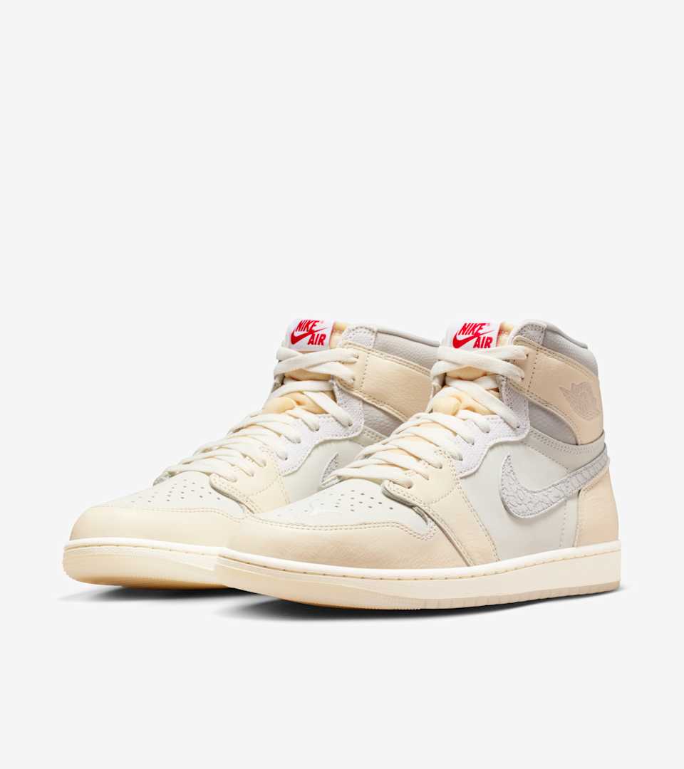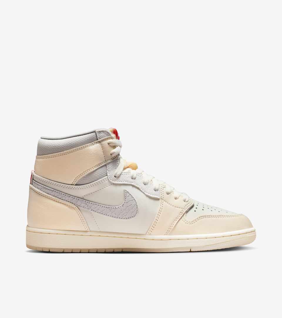 We've stripped back this AJ1 to the fundamentals. Premium leather and performance-ready details get a clean wash of Sail and Pale Ivory for elevated everyday wear, and elephant print on the Swoosh logo adds just the right amount of texture. The translucent outsole gives this AJ1 a modern touch, while exposed foam in the tongue and red contrast stitching on the heel nod to its roots on the court.
