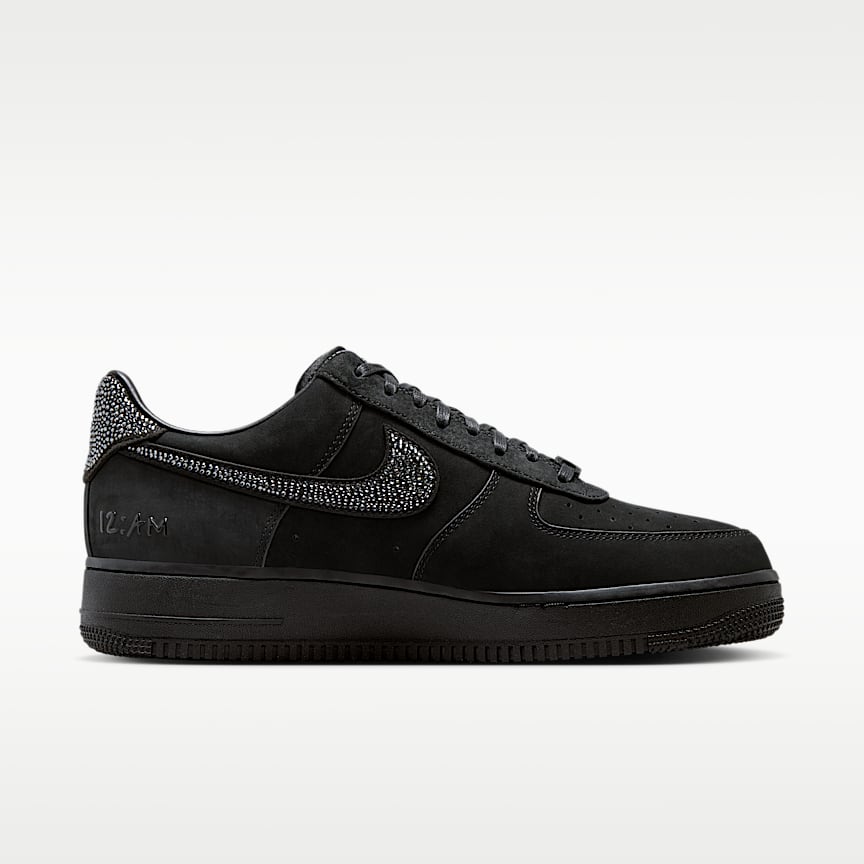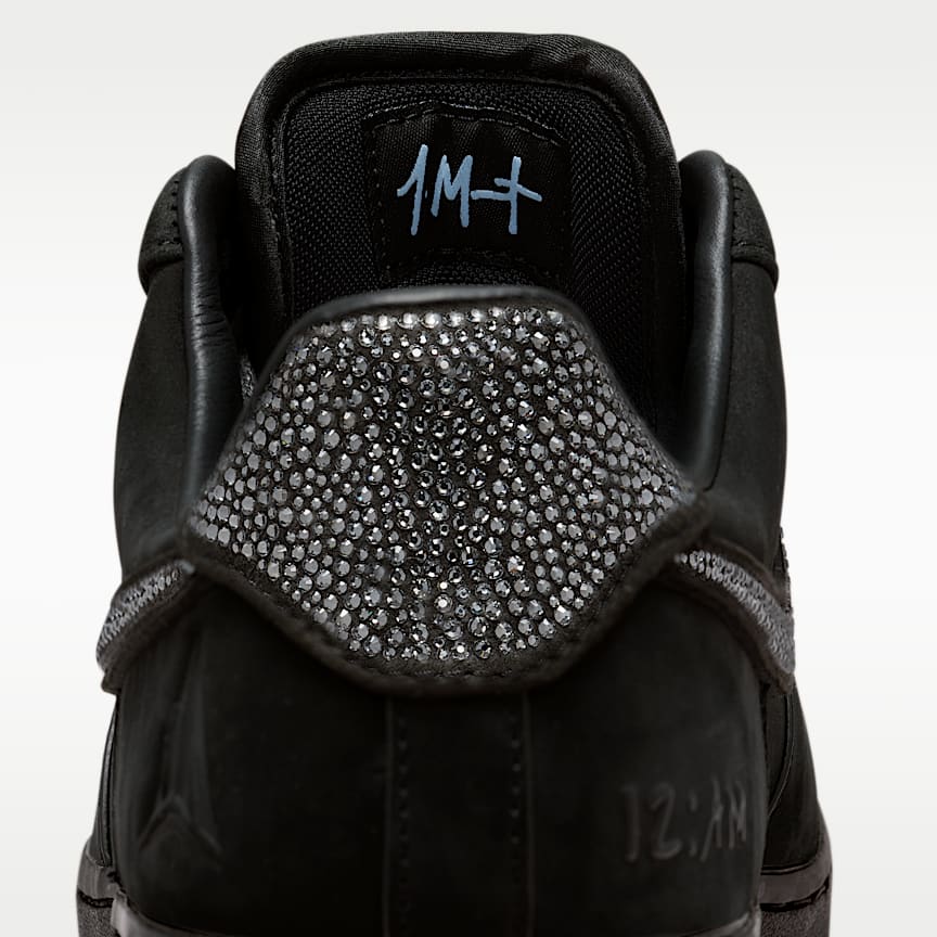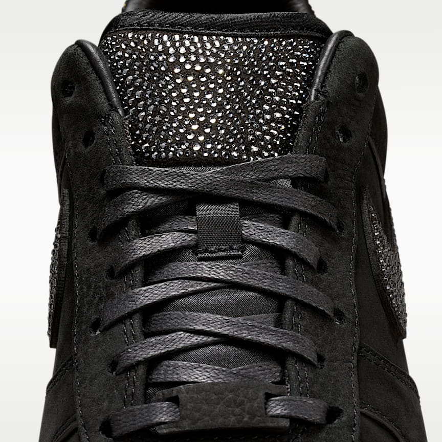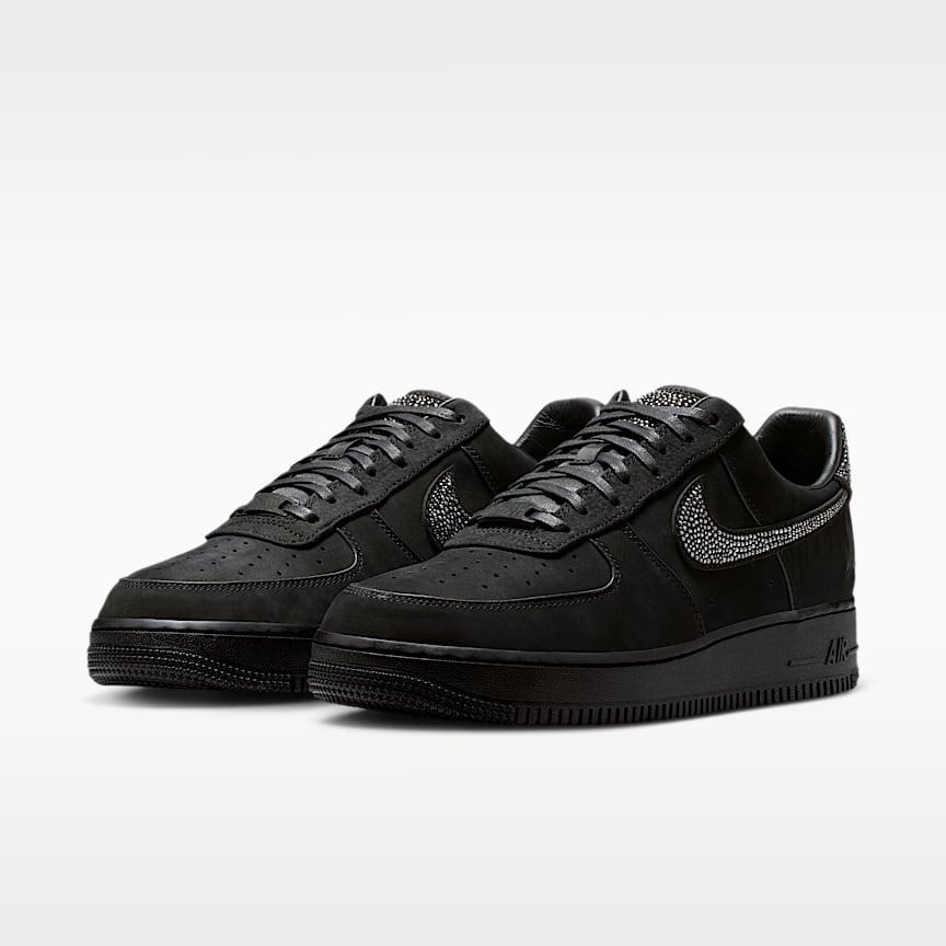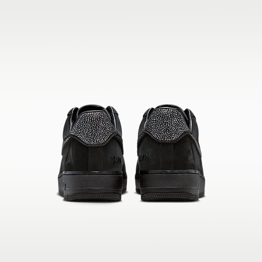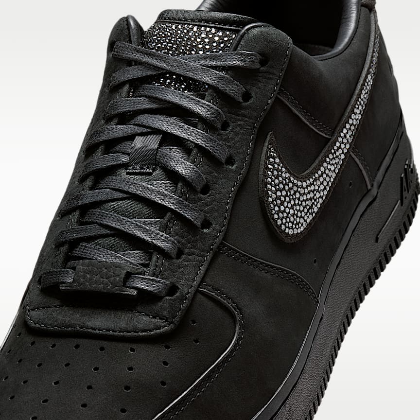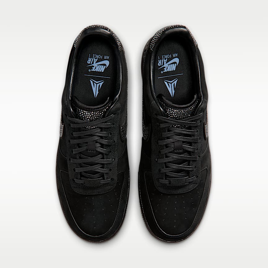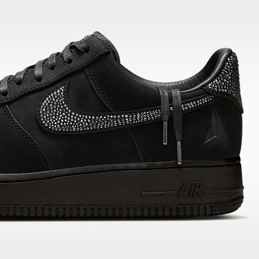 In an ode to Memphis street culture, Ja is giving us pure luxury. This Air Force 1 steps away from his typical vibrant designs in favor of a flooded black colorway, featuring a sumptuous nubuck upper laden with Swarovski® crystals from tongue to heel. Once again, Ja claims the spotlight. Benefits Leather upper with perforated toe box is breathable and comfortable. Originally designed for performance hoops, Nike Air cushioning adds lightweight, all-day comfort. Rubber outsole with heritage hoops pivot circles delivers traction and durability.