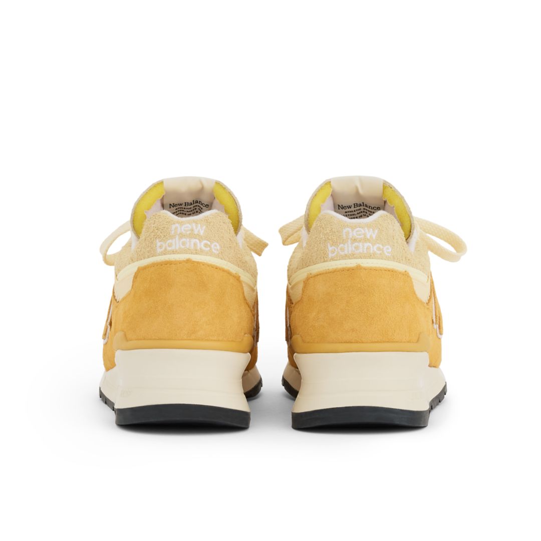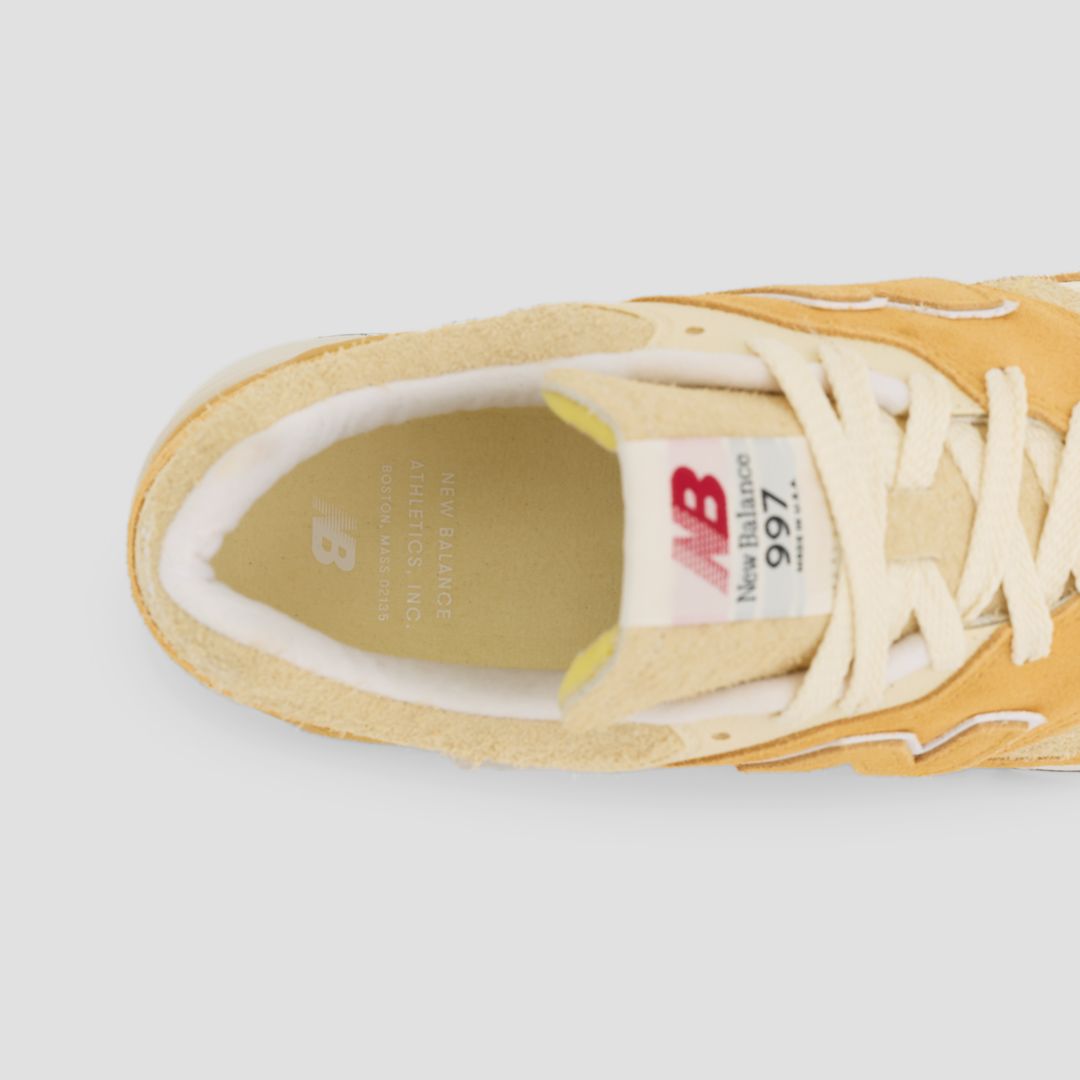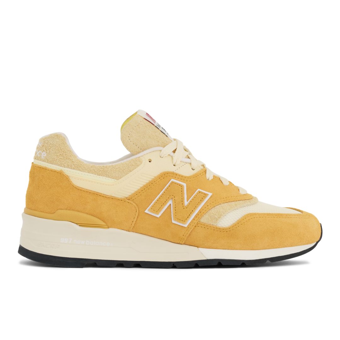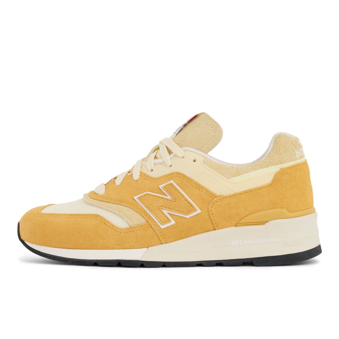 The iconic 997 returns to the Made in USA Collection for Fall/Winter '25. The classic wedge-shaped silhouette, featuring a distinctive high set heel pad, is outfitted with premium suede, mesh, and hairy suede construction and features a sophisticated neutral palette of dried apricot and calcium.