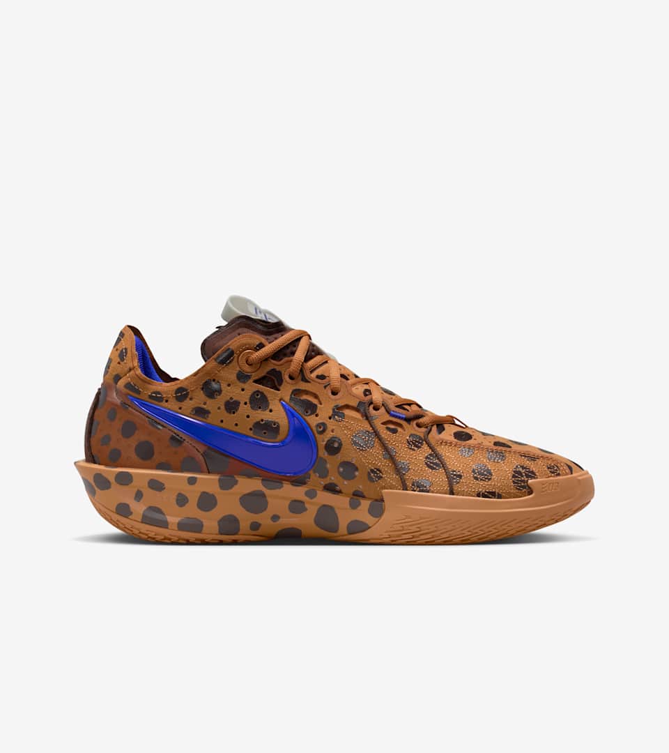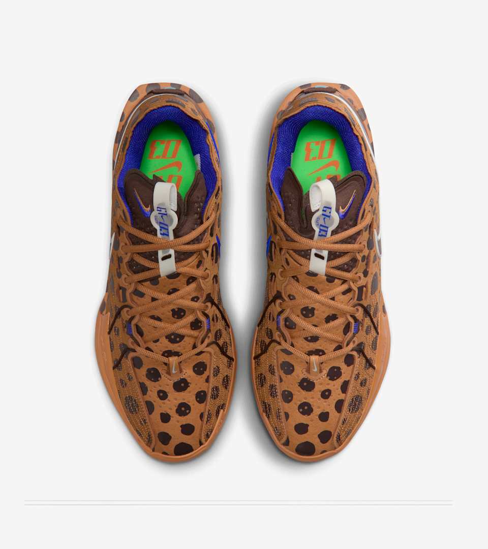 Jordan Poole brings some tasty fun to his player edition of the G.T. Cut 3. Inspired by the ultimate snack of cookies and milk, the upper mimics chocolate chips with its mix of Flax and Baroque Brown spots. Milk cartons on the heel tie it all together.