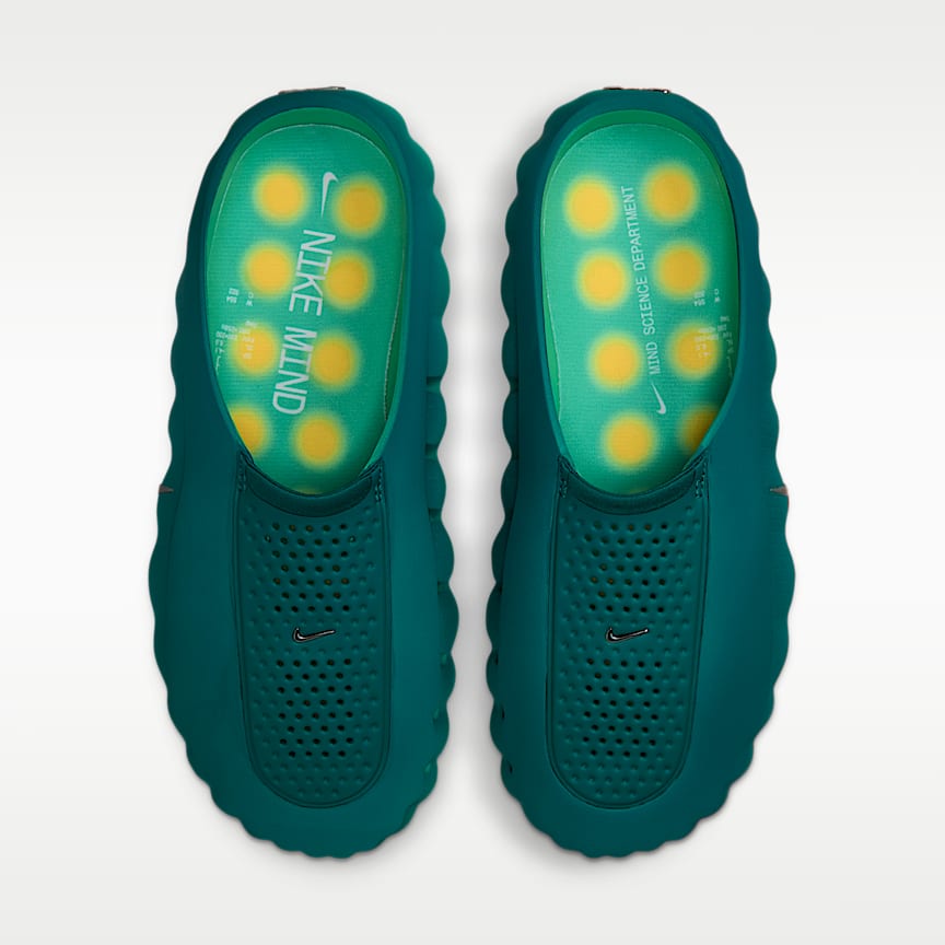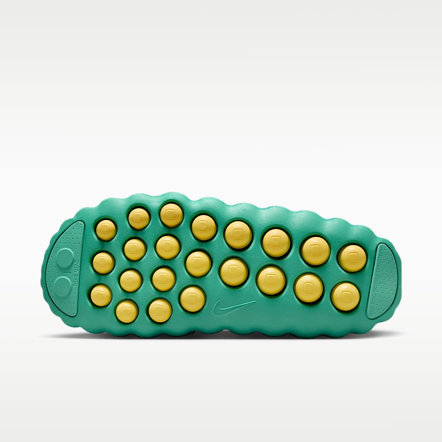 What if you could enhance your pregame routine with a mind-altering shoe? Meet the Nike Mind. Its large outsole nodes push against your foot as you step, engaging sensory areas of the brain to help you stay present and connect with your surroundings. Because when it's anyone's game, winning is all in the mind. Activate Your Senses Developed in Nike's Mind Science Department, 22 nodes move up and down against your foot in a way that is scientifically shown to activate sensory areas of the brain. Prep in Comfort Soft foam in the midsole provides robust, comfortable cushioning. Stretchy fabric on the footbed gives the nodes room to move up and down while still feeling soft against your foot. If you generally purchase a 1/2 size, we suggest sizing up for a comfortable fit. More Benefits Rubber pods near the toe and heel help provide durable traction. Knit tongue feels soft and features perforations for breathability.