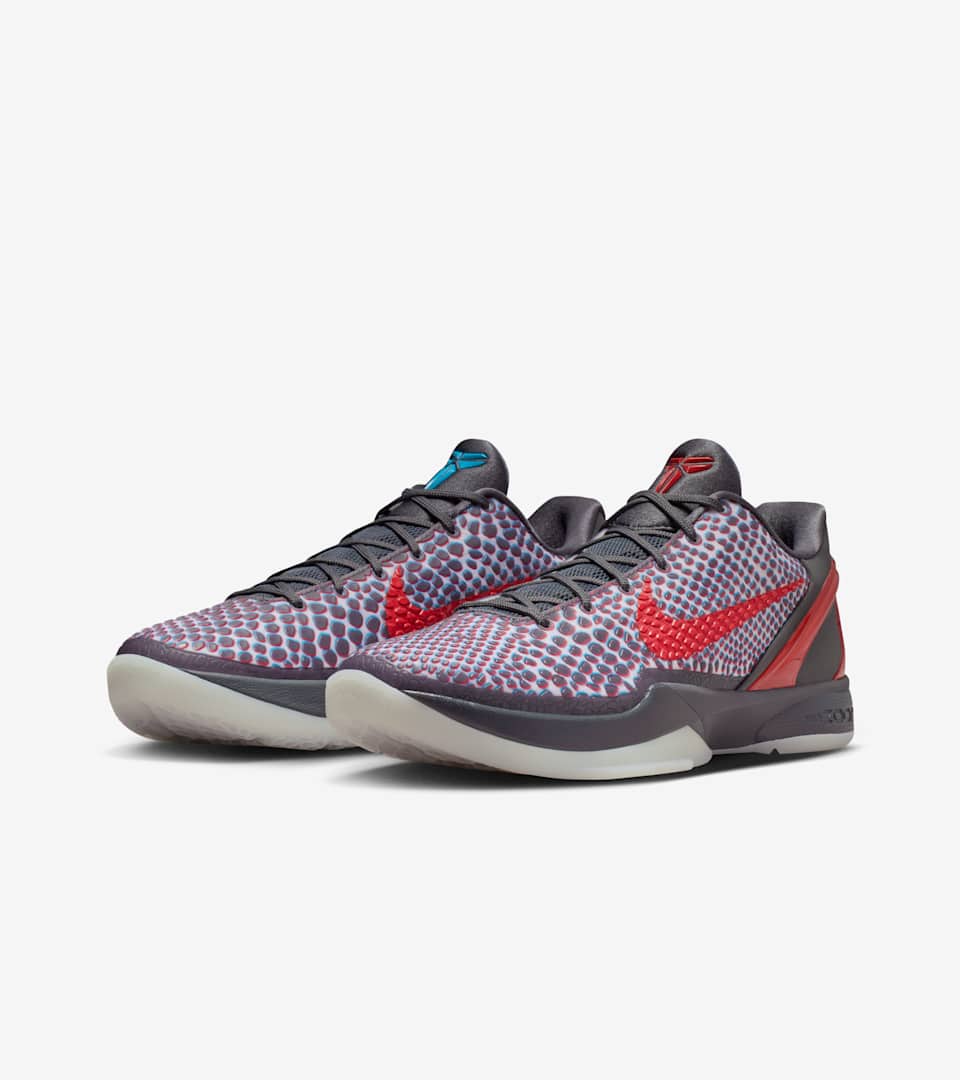 15 years after its debut, the Kobe 6 "3D" is finally getting a sequel. This version amps up the drama with improved tech like responsive foam, an Air Zoom Turbo unit in the forefoot and low-profile traction for improved court-feel and quickness. Slip on the included 3D glasses to make the stereoscopic upper pop.