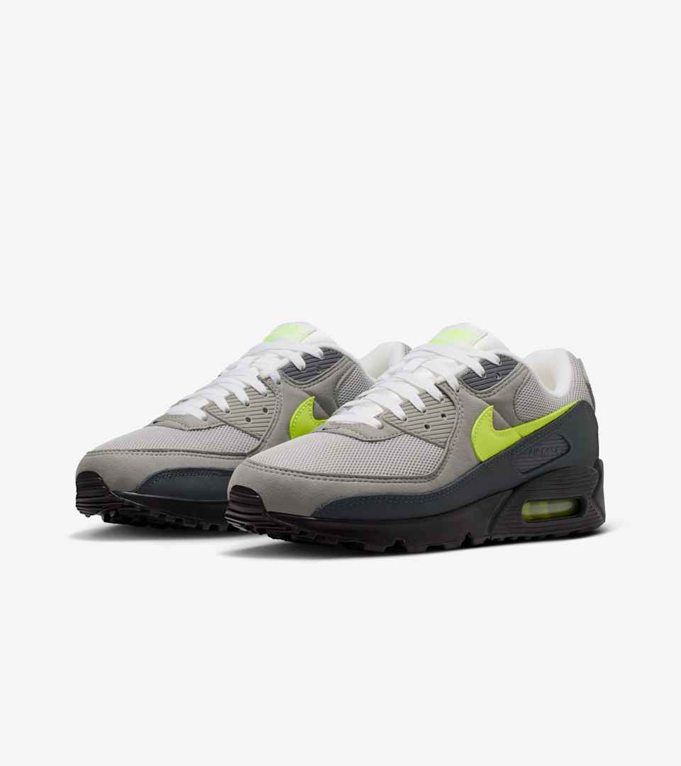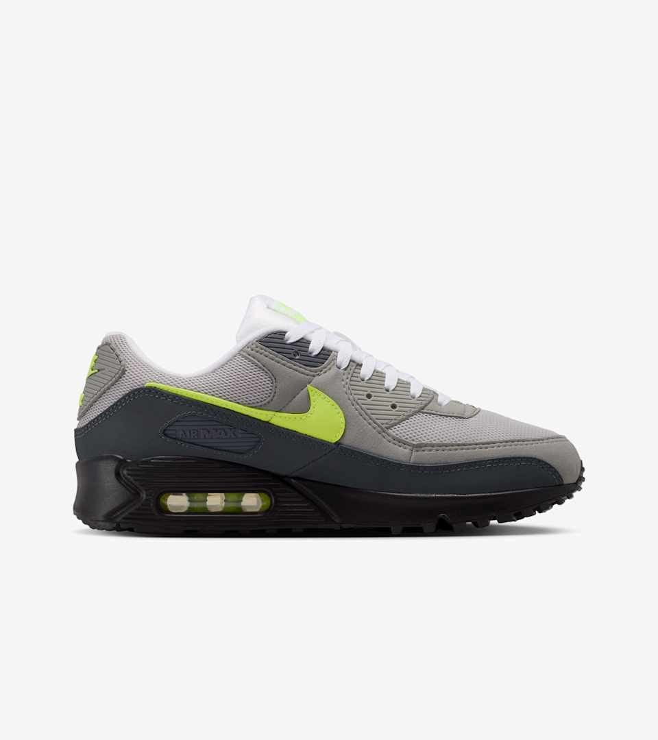 Taking notes from one of the original 95s, this Air Max 90 gets the high-constrast look. Pops of Neon Yellow come through screaming, especially against the stacks of Anthracite, Light Charcoal and Pearl Grey. It's a beautiful thing when family members match.