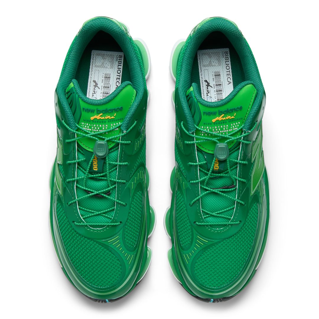 A progressive, experimental design highlighting the distinctive features and style of 2000s running-inspired classics, the ABZORB 2000 utilizes a full-length combination of ABZORB cushioning and ABZORB SBS pods. Together with its minimalist-influenced upper design, the model provides a new way of looking at visible tech. For his collaborative take on the new silhouette, Aminé dresses the entire upper in bright green mesh with glossy, synthetic, tonal overlays. Embroidered heel branding accompanies a co-branded tongue tag to mark the occasion.