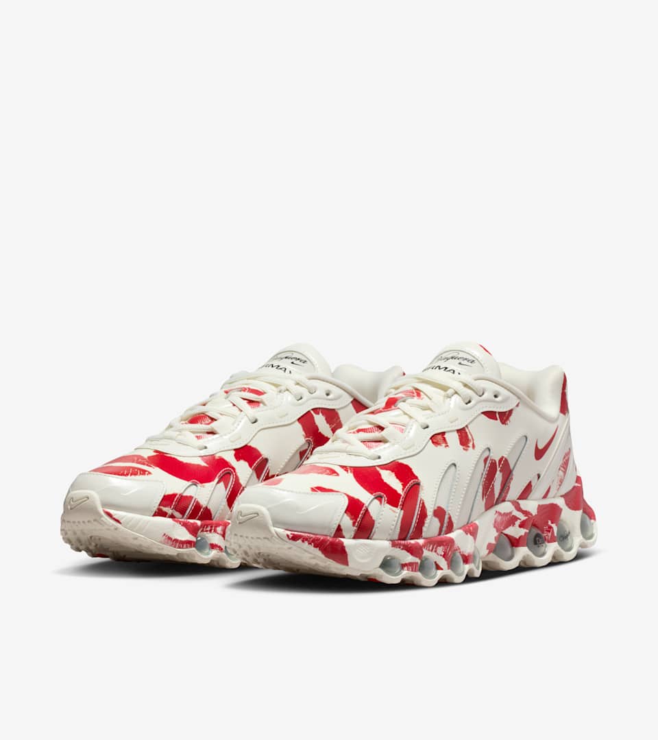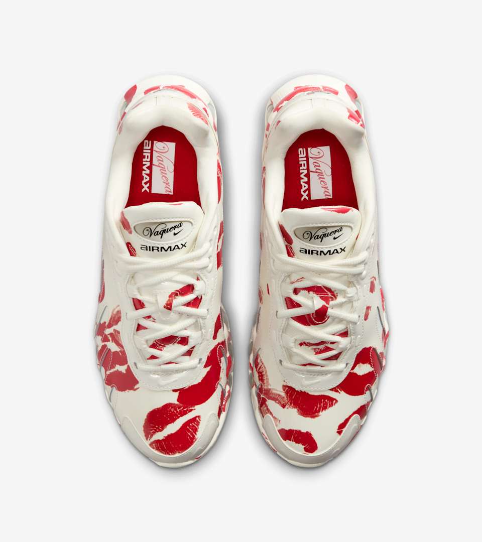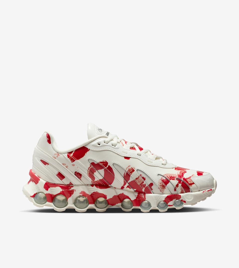 Nike and Vaquera take the Dn8 to lustrous new heights. The shoe's upper is made of glossy patent leather that's freckled with shiny metallic logos and printed graphics that mimic the most passionate lipstick kisses. Underfoot, the translucent clear outsole keeps visual interest alive wherever your steps take you.